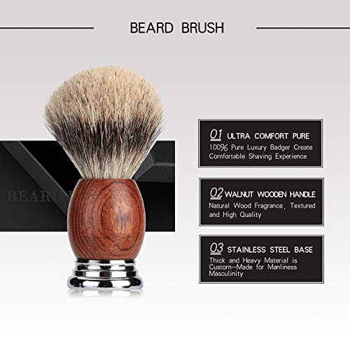 100% Pure Badger Hair Shaving Brush Handmade with Walnut Wooden Handle and Stainless Steel Base Perfect for Wet Shaving (Brown)
