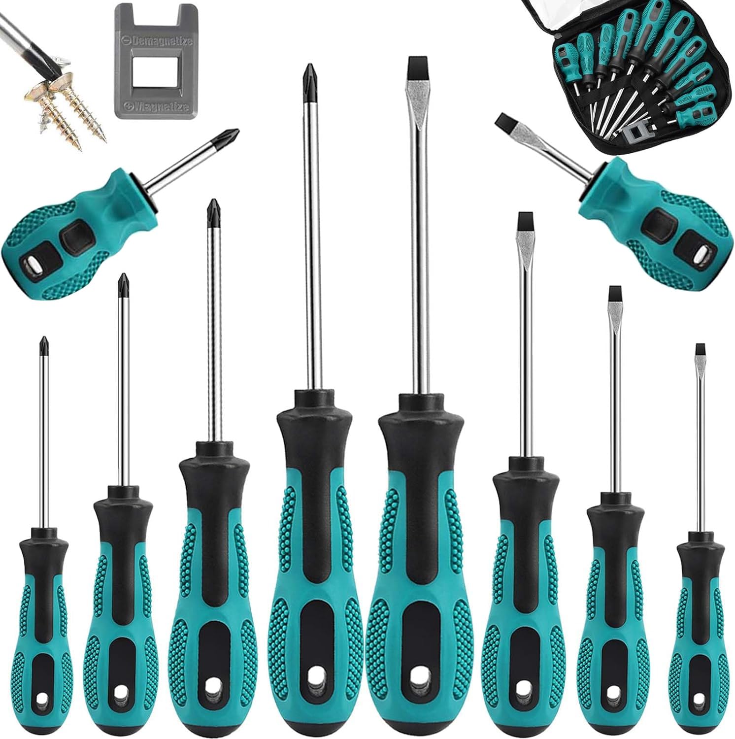 - 【Strong Magnetic Tips】This professional screwdriver set with strong magnetic tips can hold or lift screws easily.Prevent dropping and losing screws.