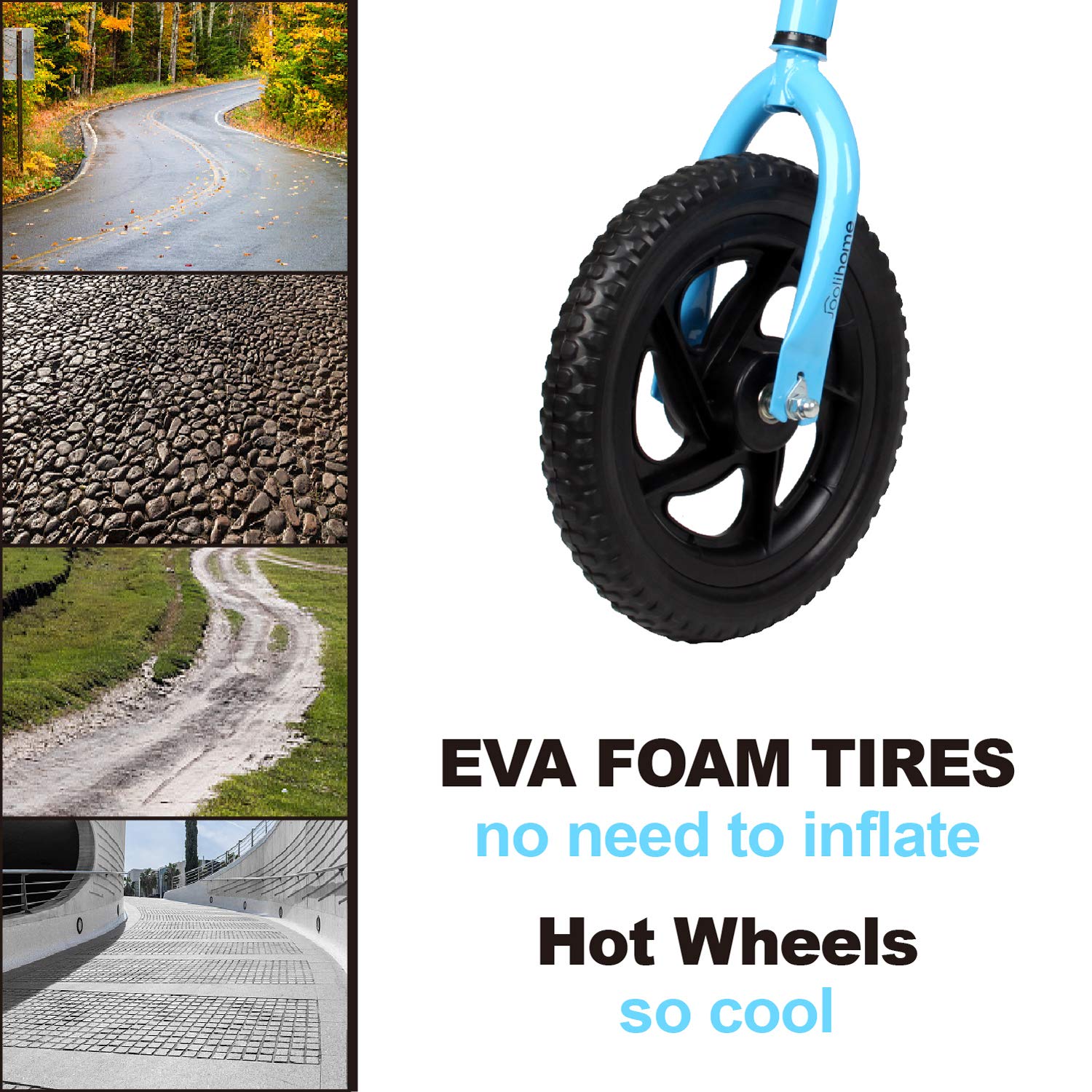 - EVA TIRES - The Balance Bike comes with flat-free EVA polymer tires, no need to ever inflate, help provide a smooth ride and PP wheel enhance stability; perfect for riding exercise no matter the surface (on the playground, the lawn or trail).