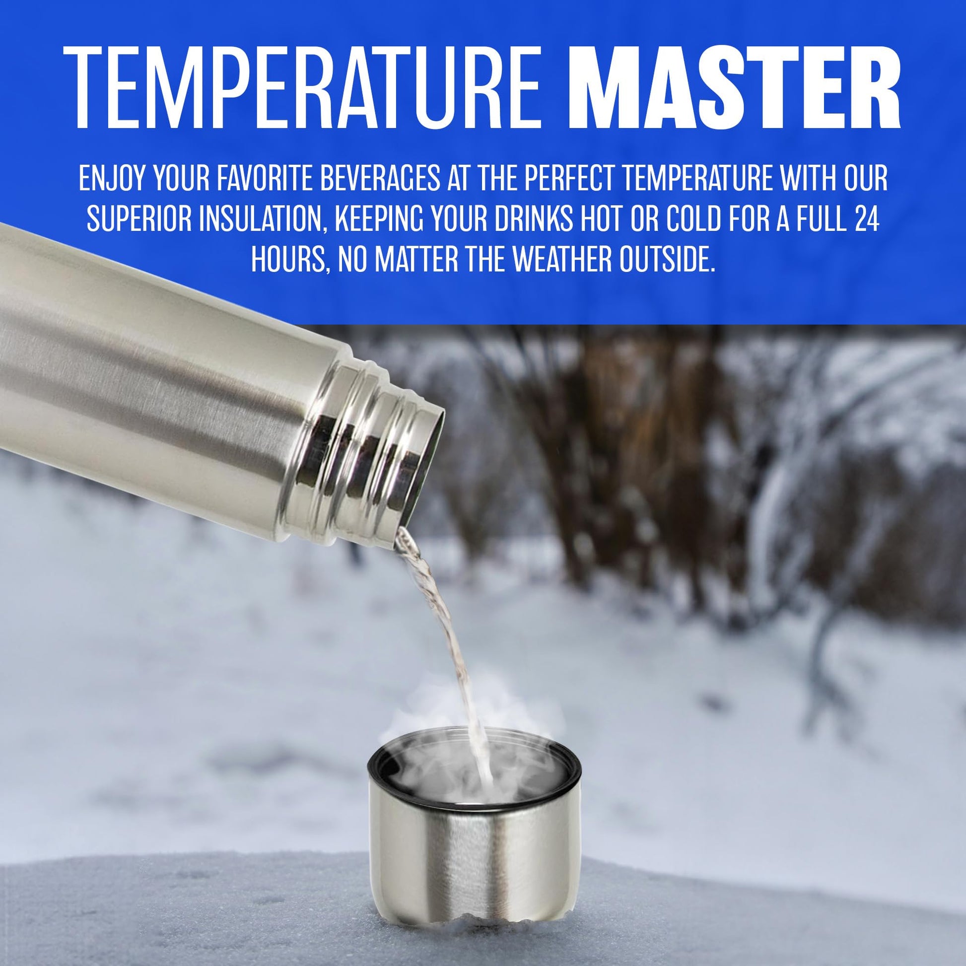 - ✔️ KEEP IT HOT OR COLD: This 1l Vacuum Bottle is made with superior insulation that maintains temperatures inside regardless of the temperature outside and keeps liquids (soup, coffee, tea) hot or cold drinks cool for 24 hours