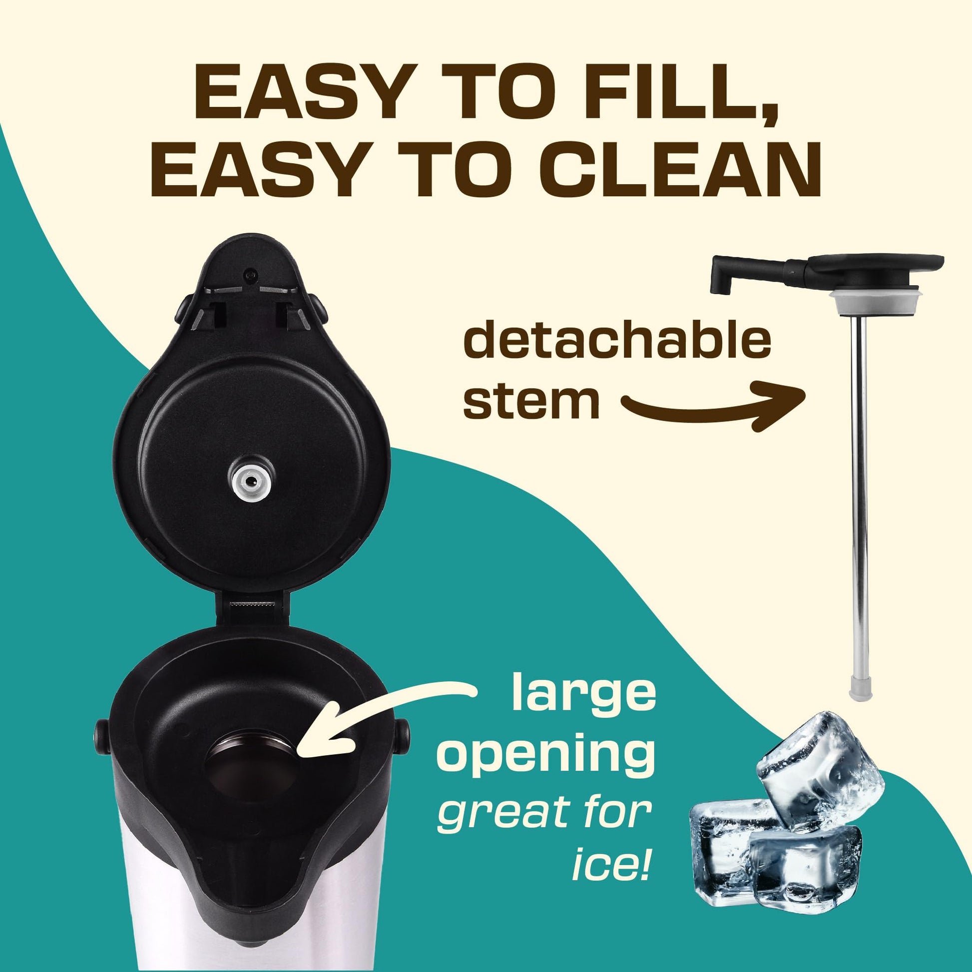 - SIMPLE CLEANING TEA DISPENSER » Our coffee carafe is designed with a large mouth opening to make filling and cleaning a breeze. Clean easily by wiping with soap and warm water.