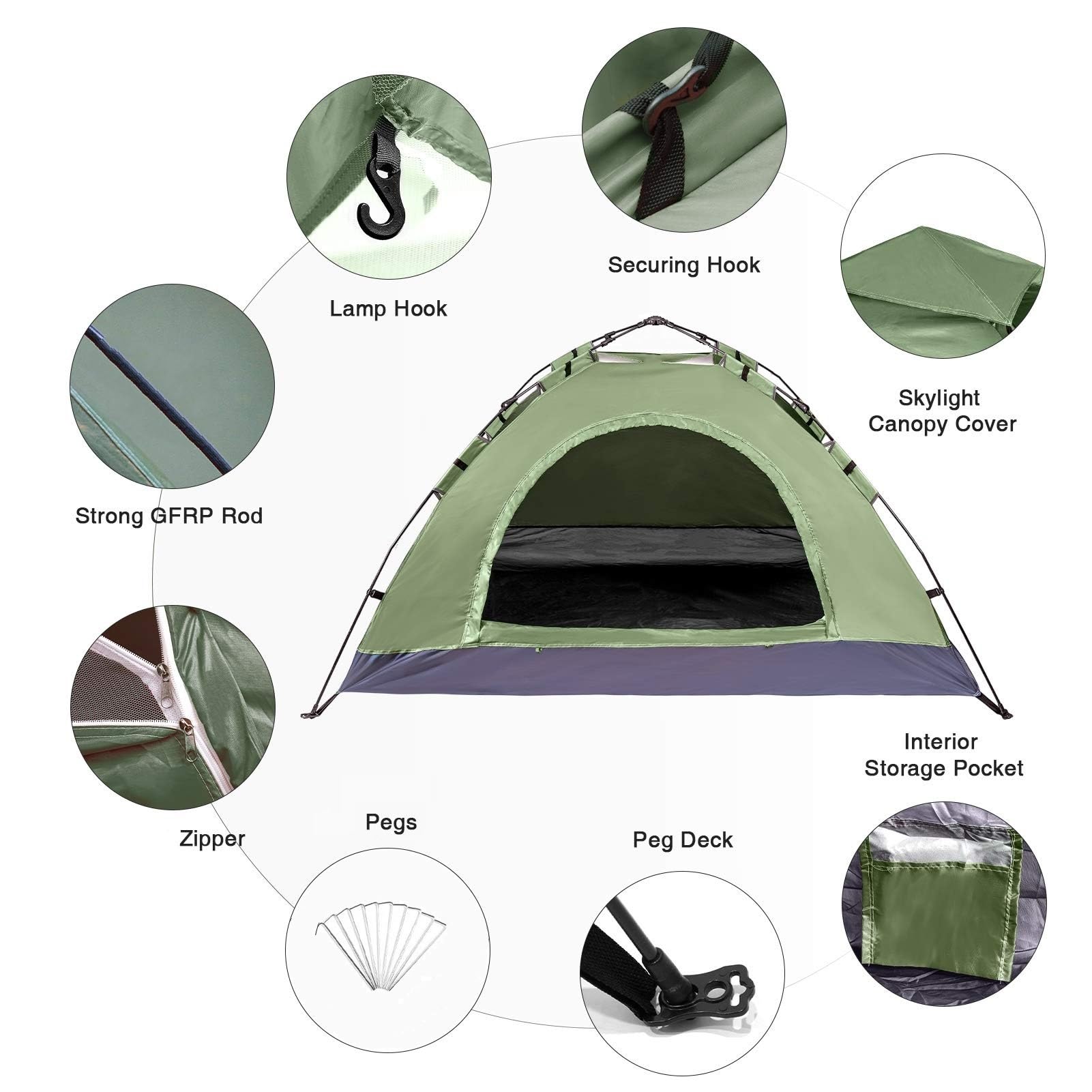 - EASY SETUP: Extremely simple dome-style of the easy set up tent, no experience needed. Only takes less than 3 minutes to quickly set by 1-2 people. Simpler and tougher than the pop up tent and automatic camp tent
