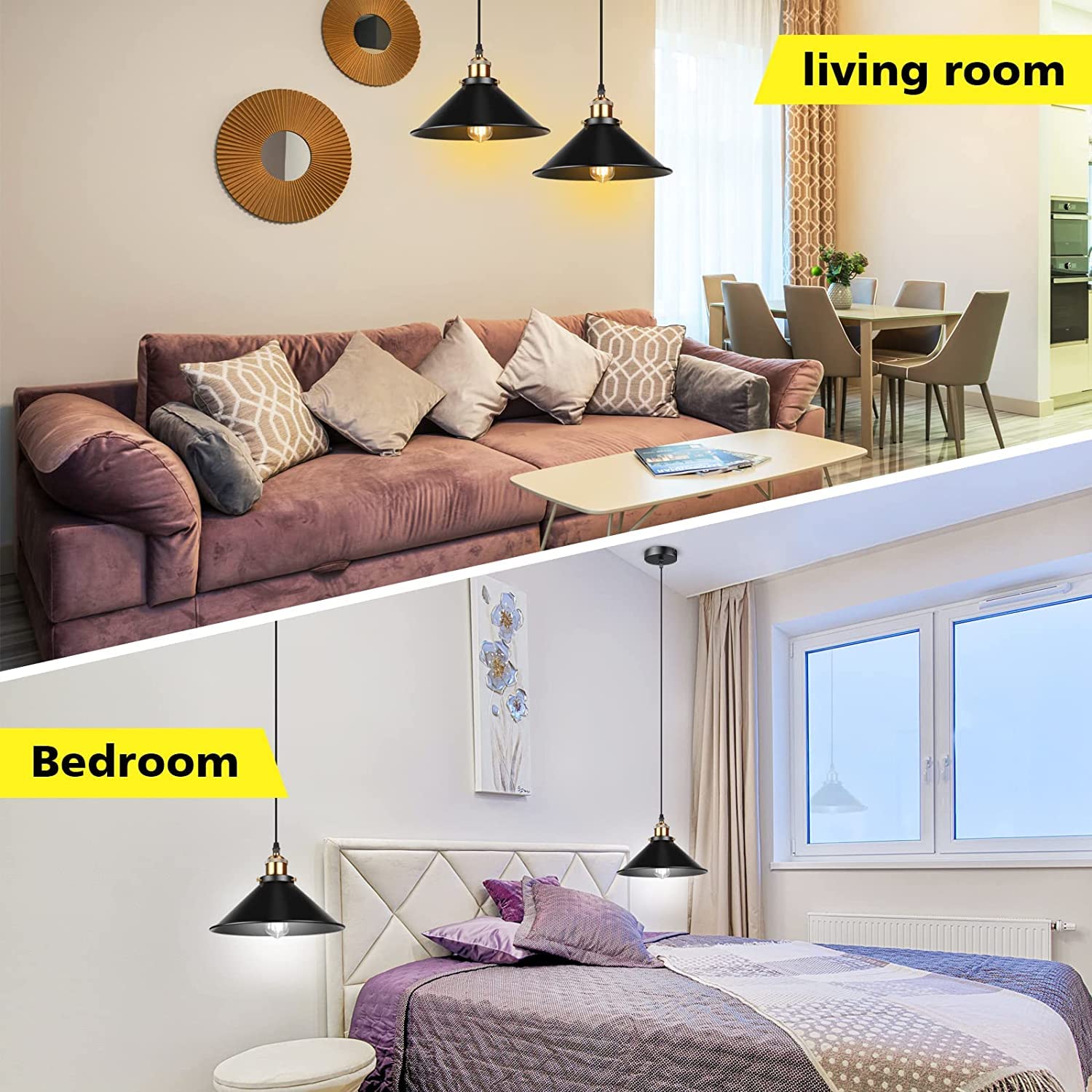 - 【Industrial Retro Design】Black pendant light is designed with a 26cm lampshde, features on metal oil-rubbed black finish lampshade, which perfectly fits in with your modern industrial theme and transformed your house into sleek and modern. NOTE: The inner of lampshade is black.