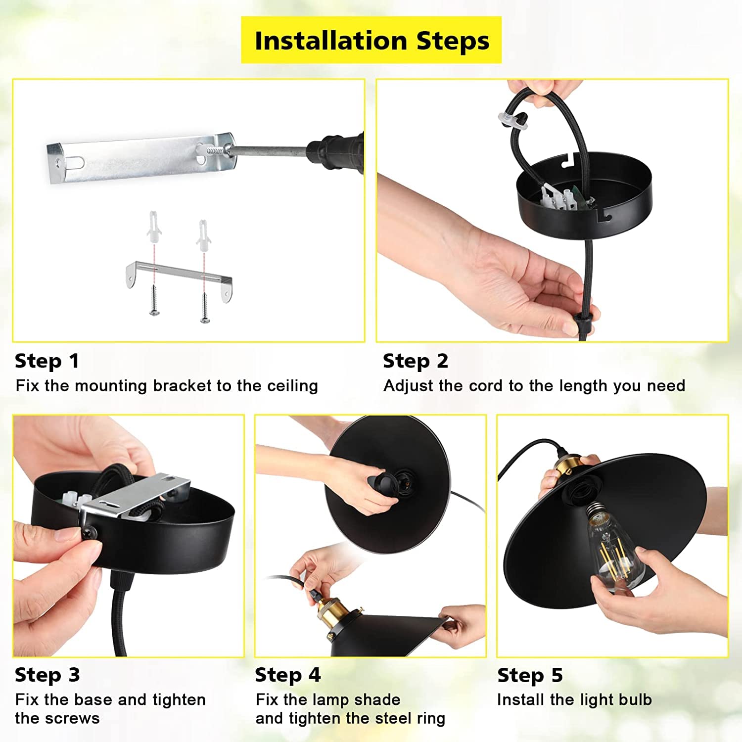 - 【Easy Installation】This vintage hanging light is easy to install. Package includes everything to install(canopy, E26 light socket, metal lampshade and screws). A professional user manual will guide you how to mount this ceiling lamp, which will not need to spend a lot of time.