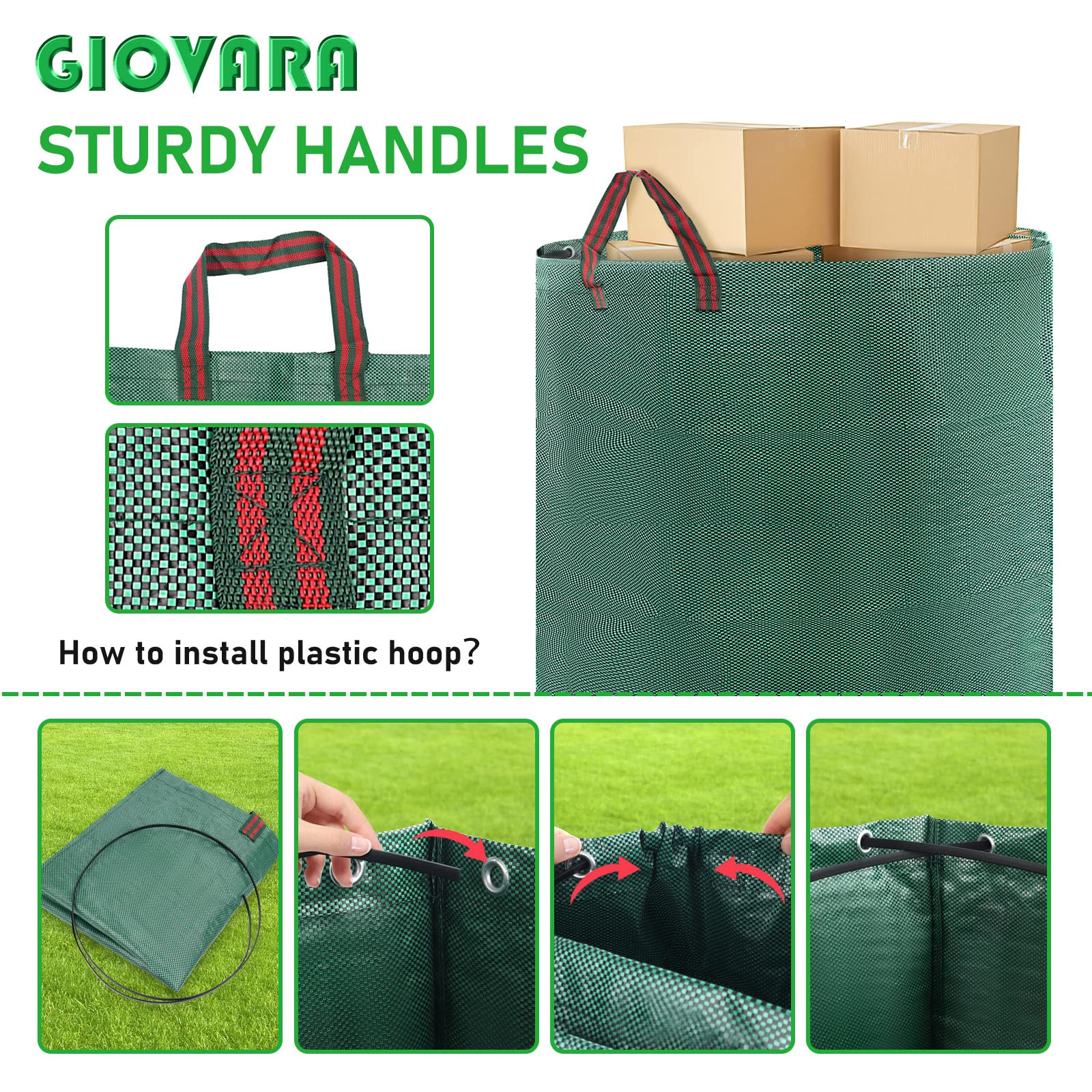 Each of bags has a capacity of 500liters that proves to be particularly useful in the case of bulky materials for its plenty of space such as leaves, garden rubbish, rubble to car boot storage, vegetable planters, potato planters and shopping baskets! A flexible clamping hoop ensures that the bag is always wide open and stable. It also can be folded small and easy to storage when it not in using.