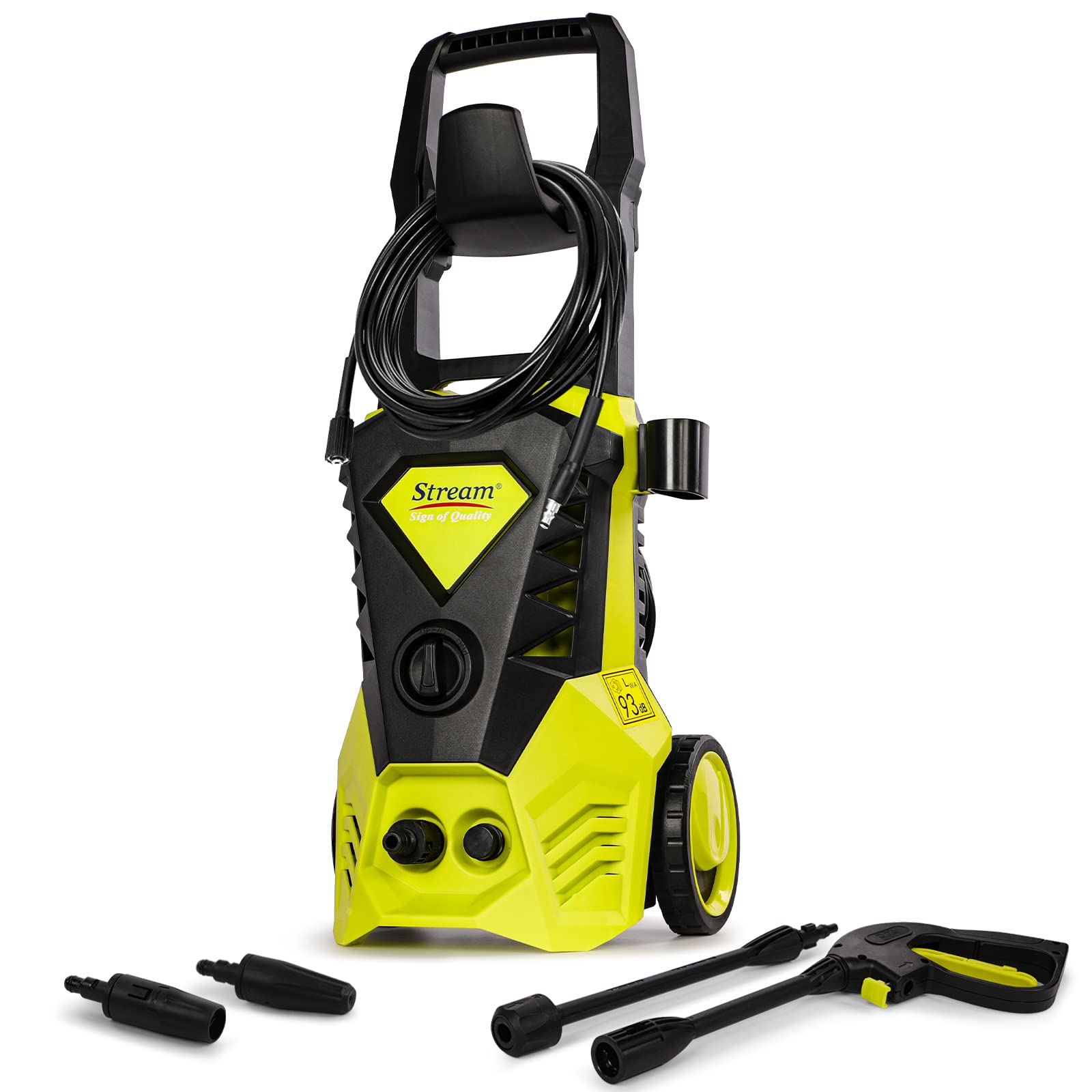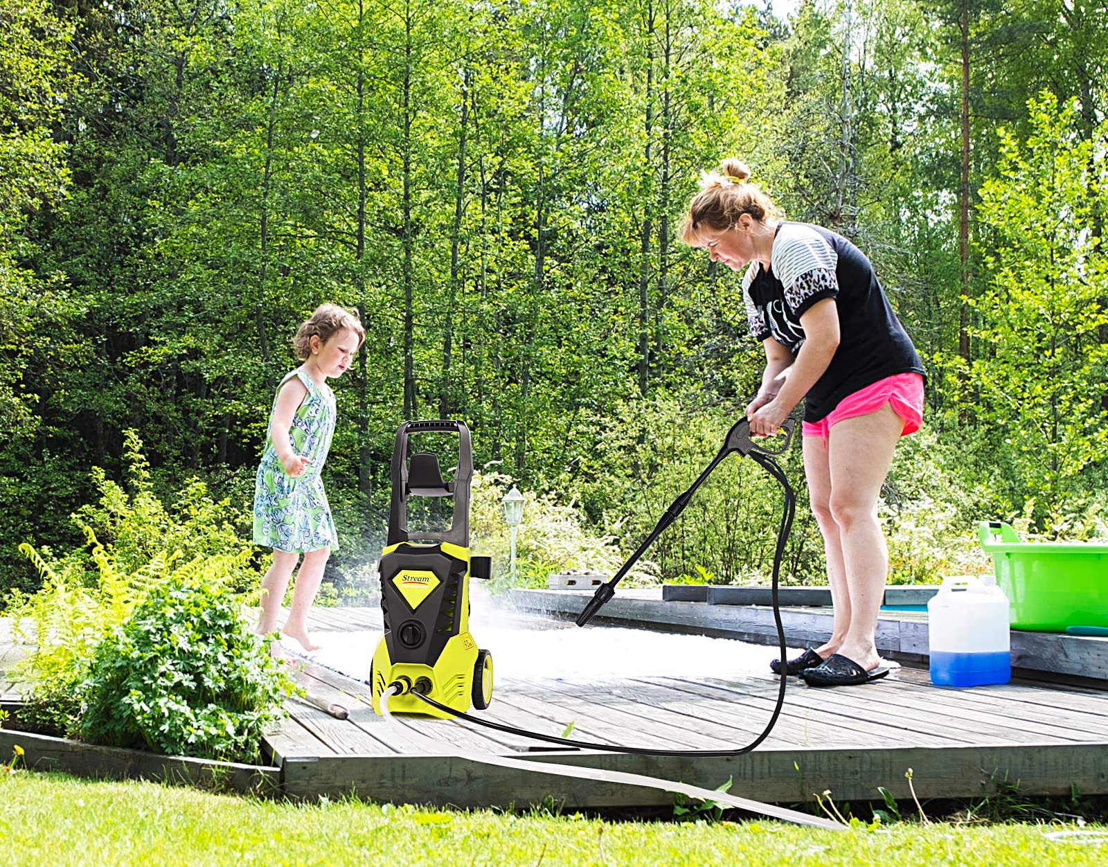 - 【Powerful High Pressure Washer】 The 2000W pressure washers could provide up to 450 liter’s/h 150bar water flow, enough for removing deep-seated dirt, cement, pavement, pools, outdoor furniture, cars, trucks and more. IPX5 waterproofing systemic