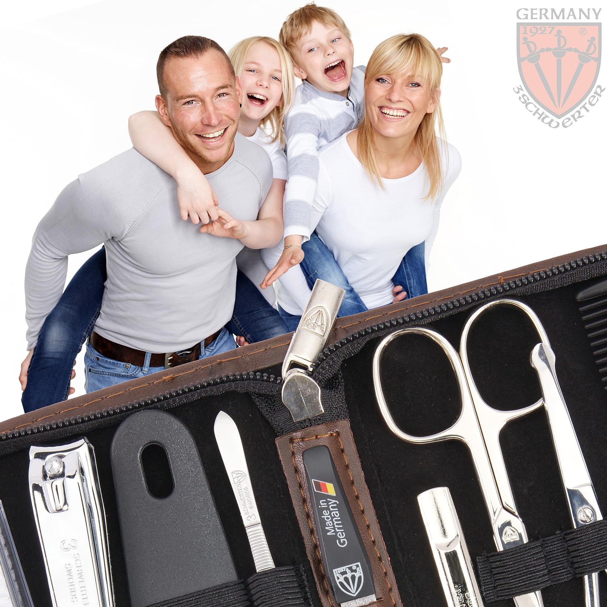 3 Swords Germany - brand quality 10 piece manicure pedicure grooming kit set for professional finger & toe nail care scissors clipper fashion leather case in gift box, Made by 3 Swords (1474)
