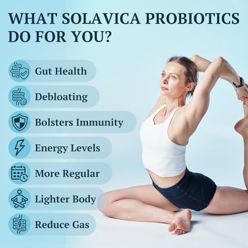 - PRO & PREBIOTIC COMPLEX - No need for additional prebiotic supplements. Unlike products solely emphasizing probiotics, Solavica's probiotic features 12 diverse high-quality probiotic strains and 3 essential prebiotics. This dynamic combination delivers a potent synergy, fortifying your gut health by harmonizing live probiotics and prebiotics.