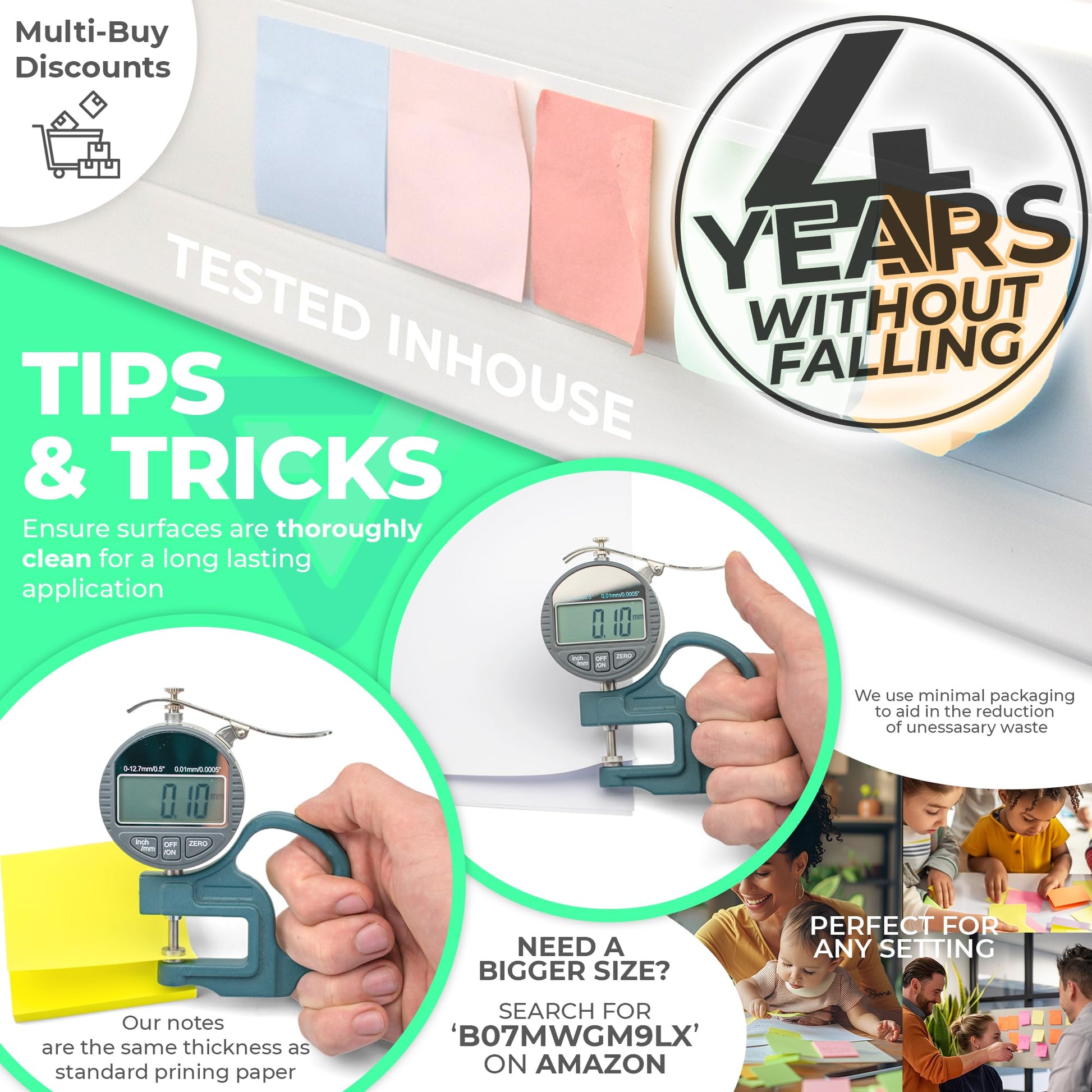 - ✓ Clean Removable Safe Water-Based Eco Adhesion: Benefit from our removable sticky notes designed with a robust adhesive quality that holds firm to surfaces. Yet, when it's time to reposition or remove, they leave no residue or marks behind. Experience the perfect balance of strength and cleanliness in one product, ensuring your notes remain in place without the worry of unsightly blemishes upon removal. Ideal for safeguarding surfaces while keeping your reminders exactly where you need them.
