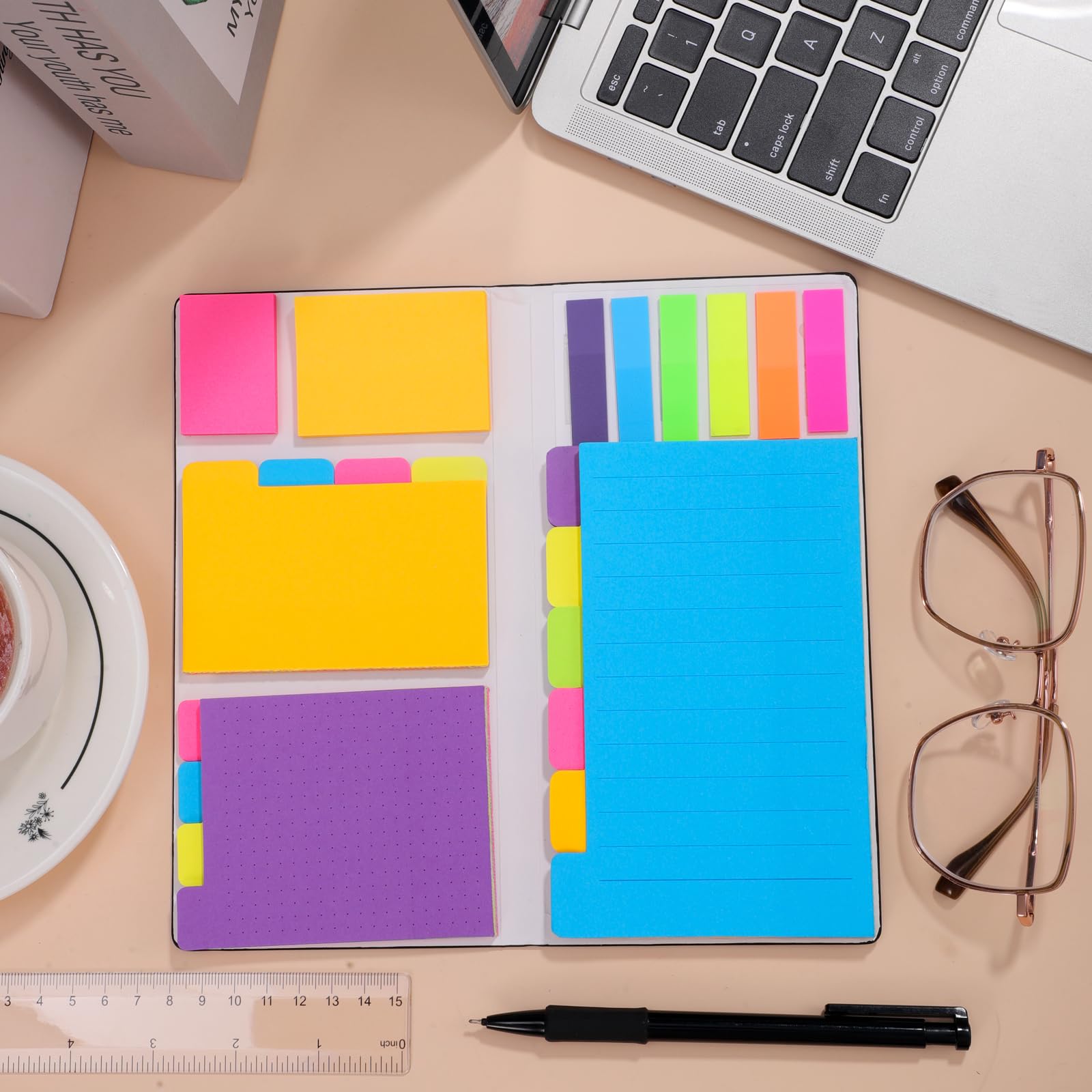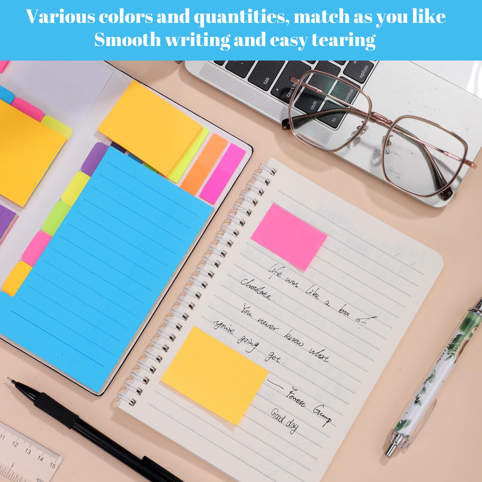 - Sticky Notes Set: This set includes 400 sticky notes in 6 different sizes, each with different colored index sticky, the quantity and size are enough for your daily use.