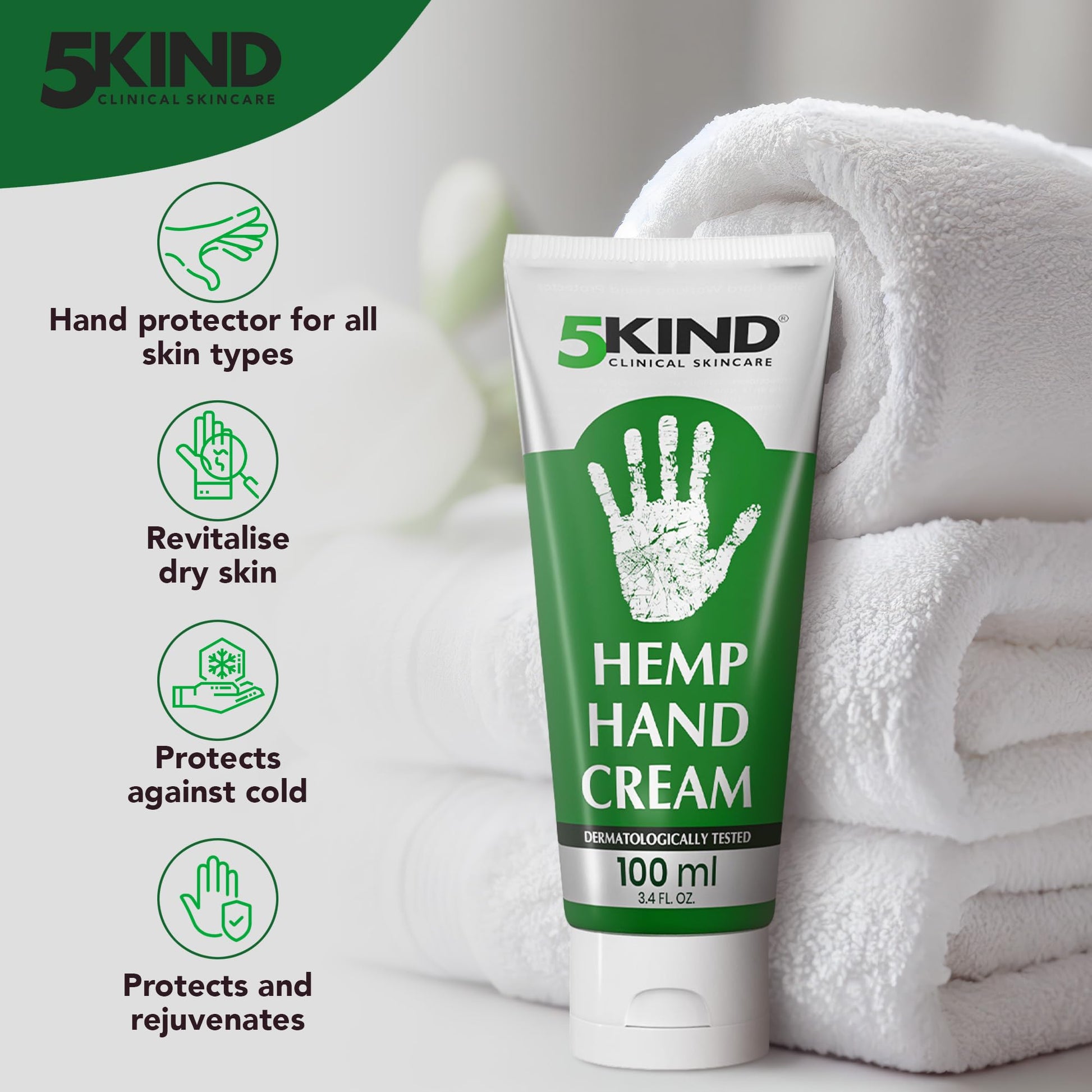 5kind Hemp Cream for Hands 100ml - Intensive Hemp Hand Cream - High Strength Working Hands Cream - Professional Women & Mens Hand Cream for Dry Hands - Natural Hand Cream
