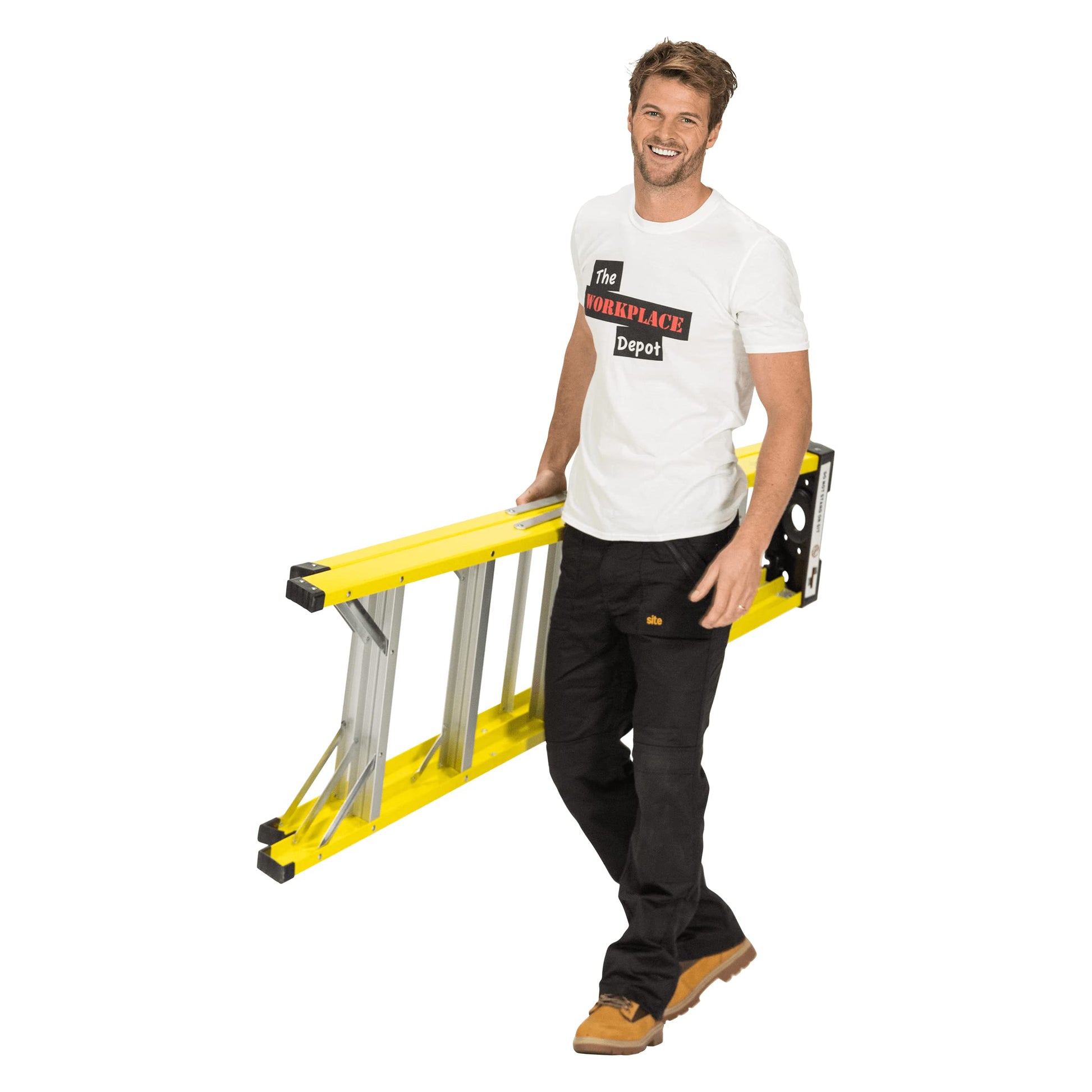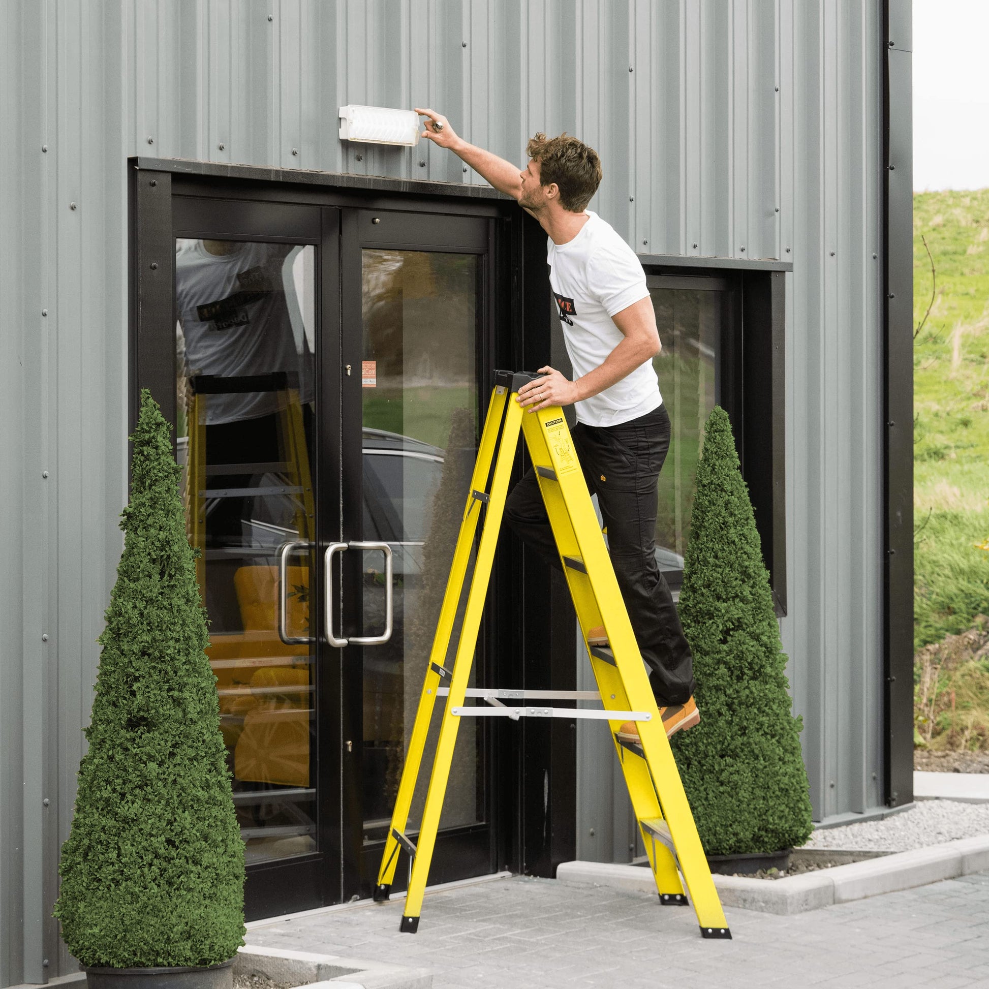 - Electrical insulation. The frame is constructed from non-conductive fibreglass material; ideal for electricians or when working around live electricity at work, home or in the field. EN131 certified for professional use.
