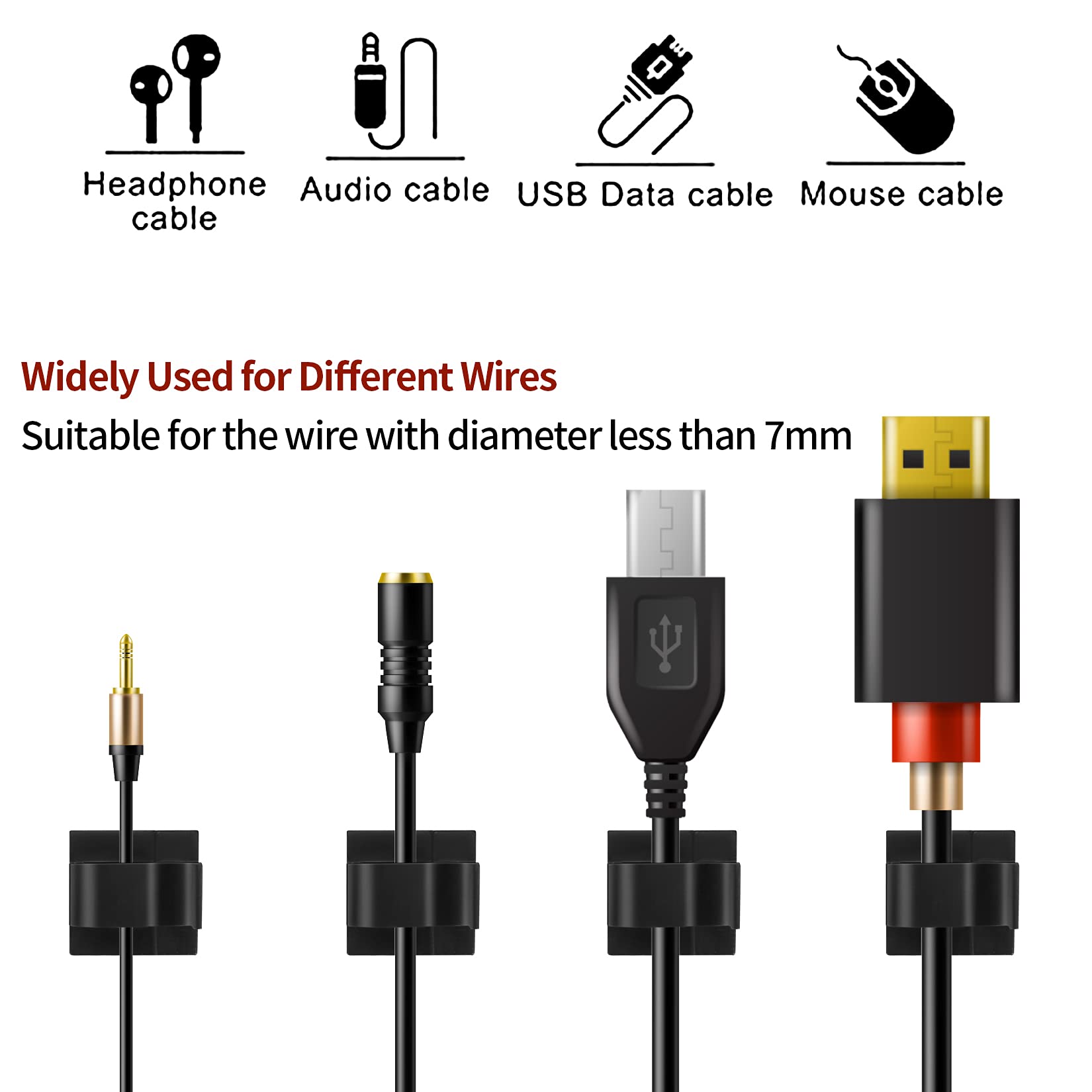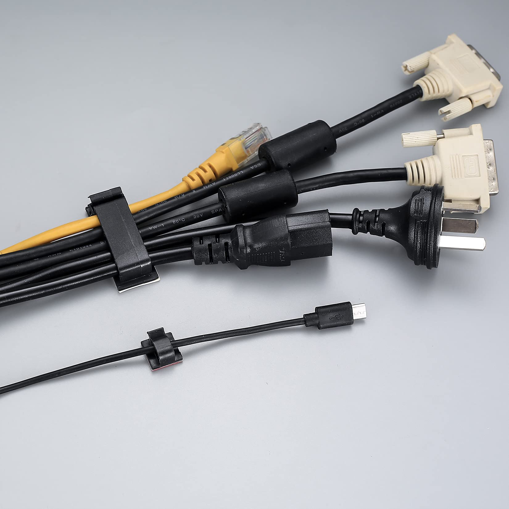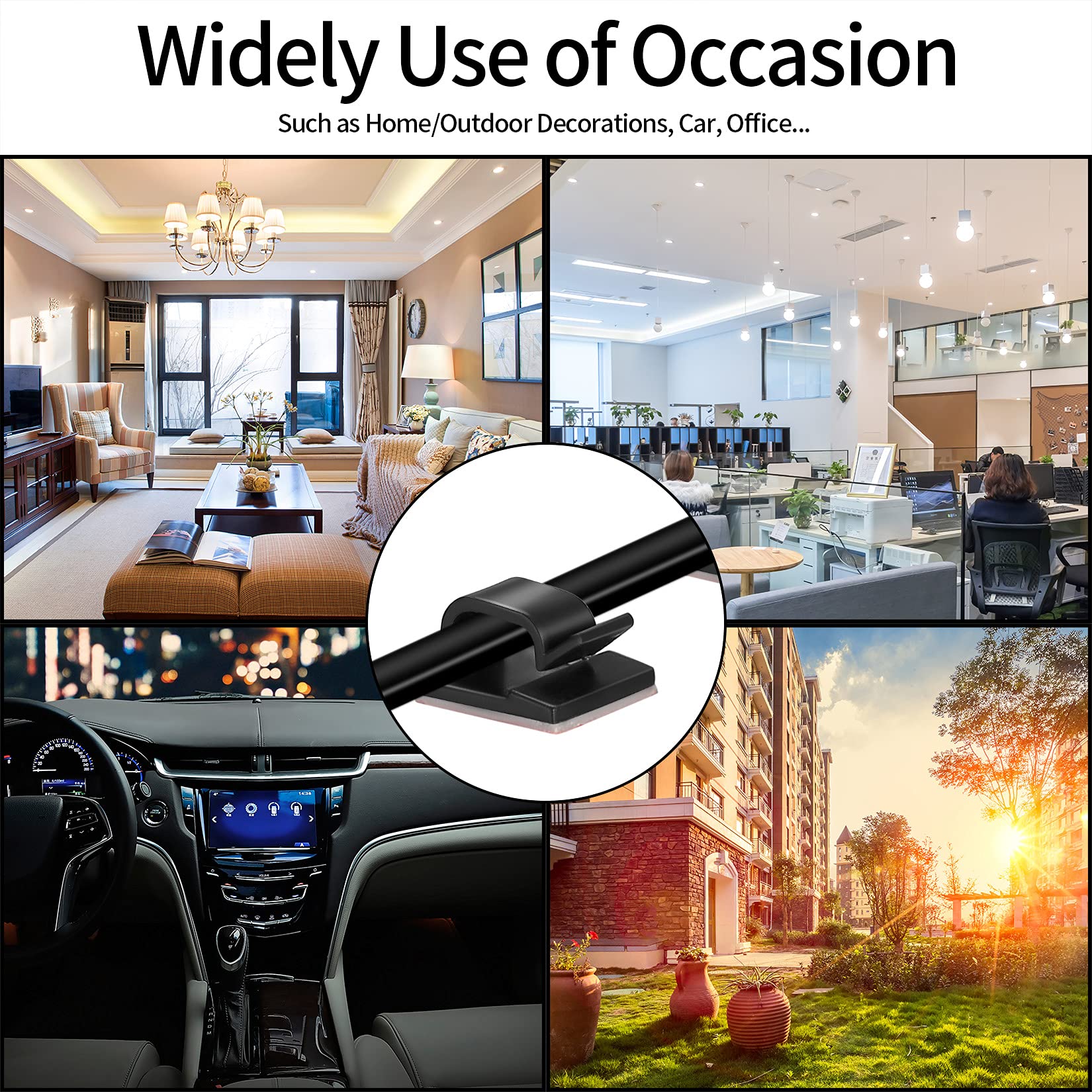 - 【Wide Applications】The cable organizer clips are commonly applied on smooth and clean surfaces such as metal, plastic, wood, tiles, etc. The cable management clips are suitable for using at home, offices, car, great for computer cables, USB cables, TV cables, etc.