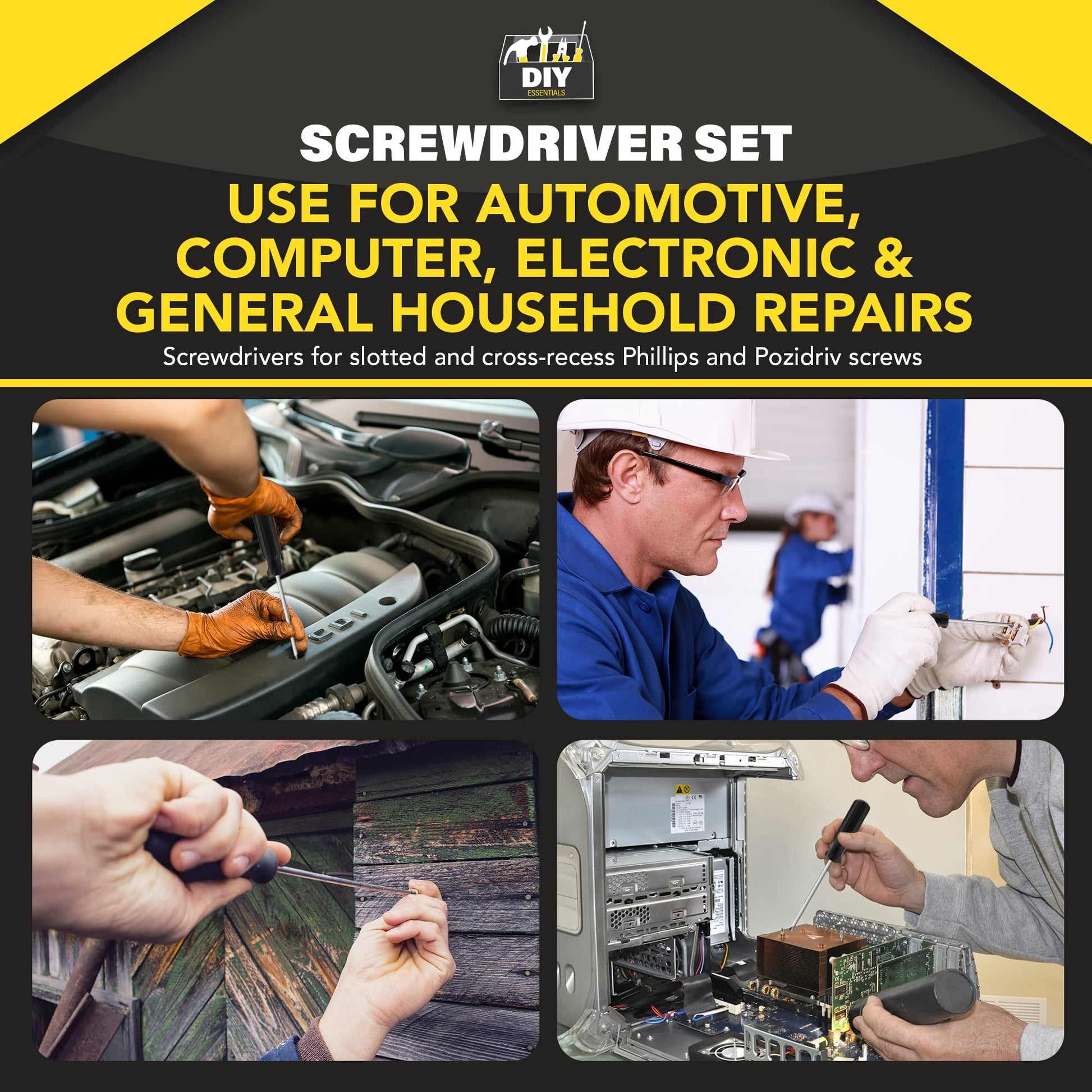 - Great For Emergency Back Up - The screw driver set is the spare set you need in the car on any odd occasion on the road. These screwdriver set electrician's use for quick fixing screws at work. It's long lasting & durable to complete jobs at hand.