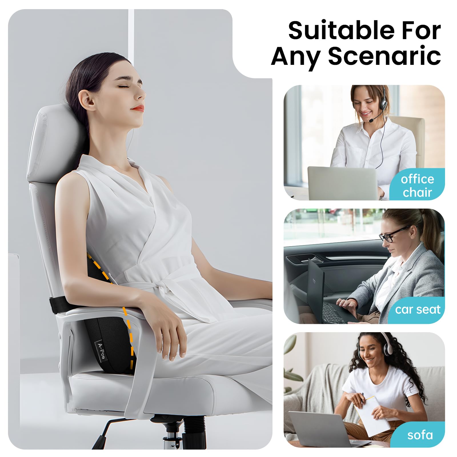 - 🏅【Enjoy Lower Back Pain Relief Anytime,Anywhere】Provide better lower back support and maximum lower back pain relief for your office computer chair, car or airplane seat, bed and sofa.If you are not satisfied, worry free full refund.