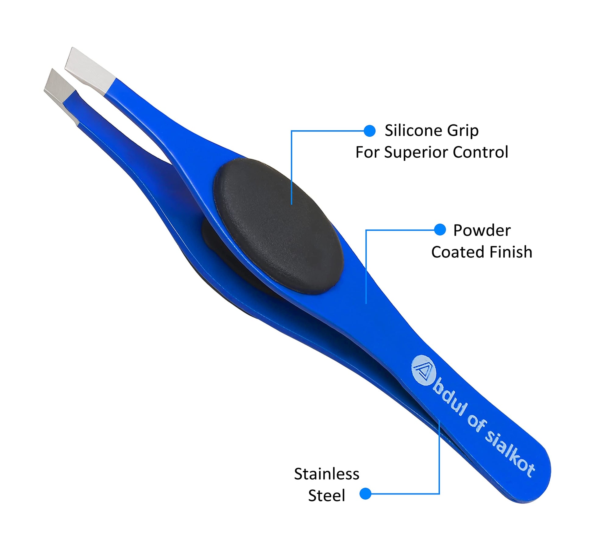 Abdul of Sialkot Tweezers for Women & Men - Tweezers Precision Engineered Stainless Steel - Fine & Ingrown Hair Tweezers, Non Slip, Sharp & Slanted Pack of 1 (Blue)