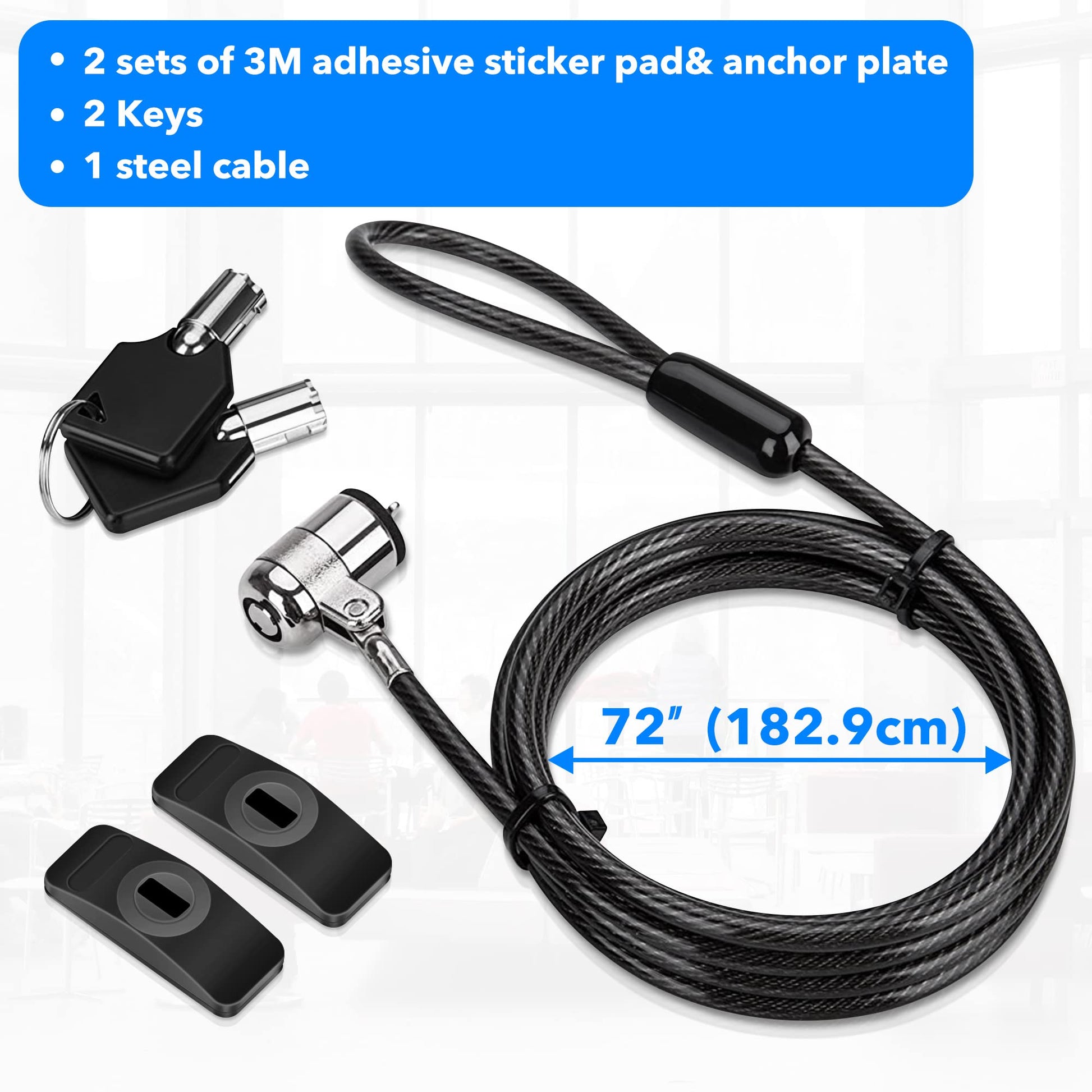 AboveTEK Laptop Lock, Tablet Lock Security Cable, 2 Keys Durable Steel iPad Locking Kit w/Adhesive Anchors, Anti Theft Hardware Protection for iPhone Mobile Notebook Computer Monitor Mac Book Laptop