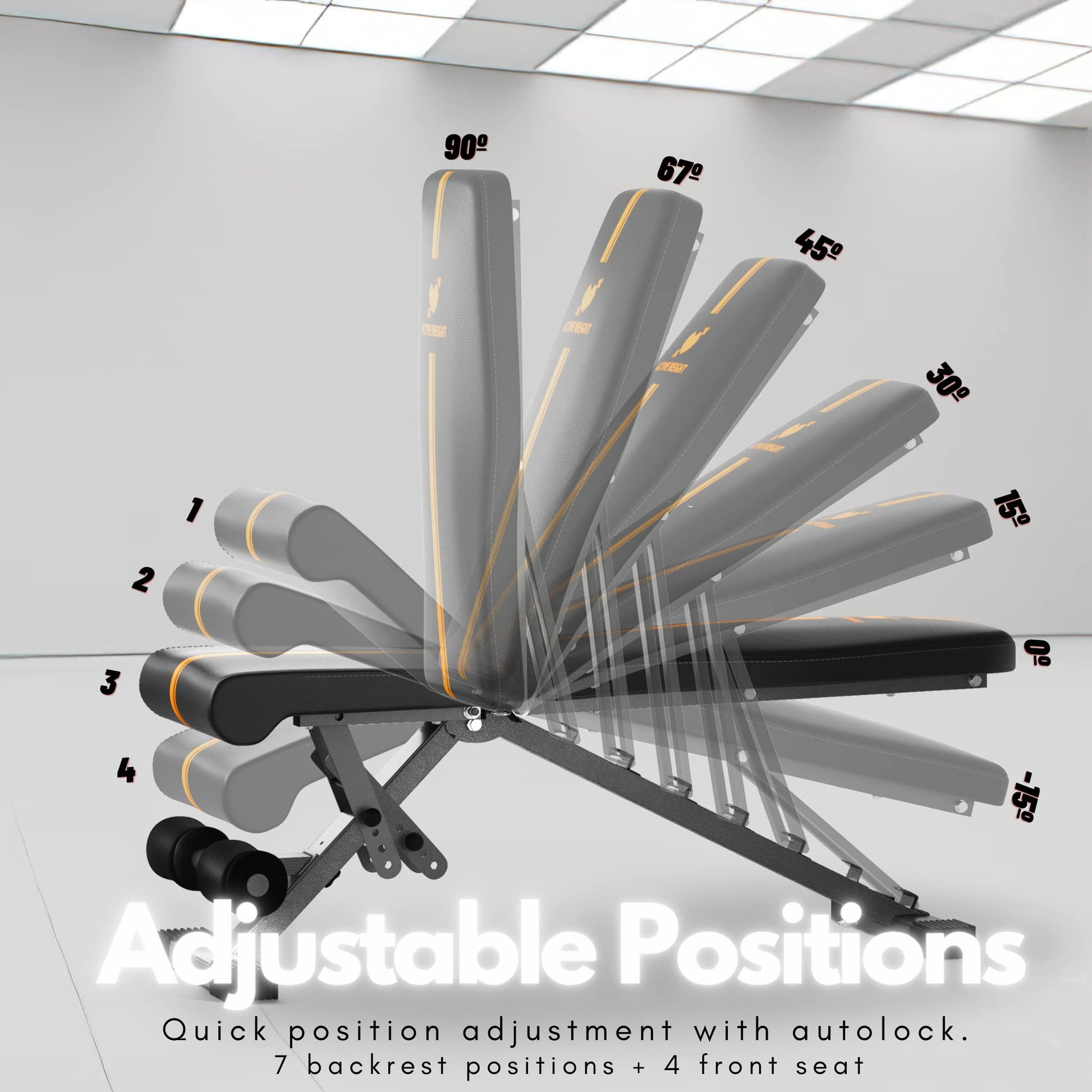 - FOLDABLE SPACE SAVER ✅: The construction of the main frame allows this multi-workout bench to be folded into a compressed, portable shape that can be stored virtually anywhere, no assembly is required after folding. Two-step two-second fold: release pin, pull lever.