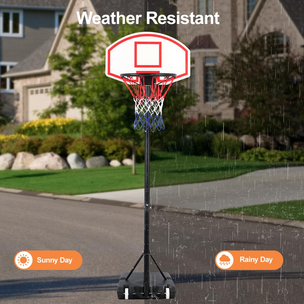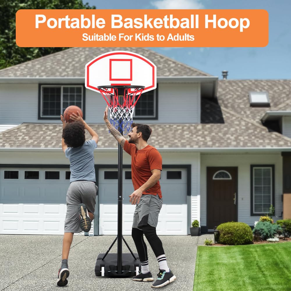 Adjustablae Basketball Hoop and Stand for Kids, Portable Basketball Set 4.9-6.9FT Adjustable Height, Basketball Hoop Net for Teenager Adults, Kids