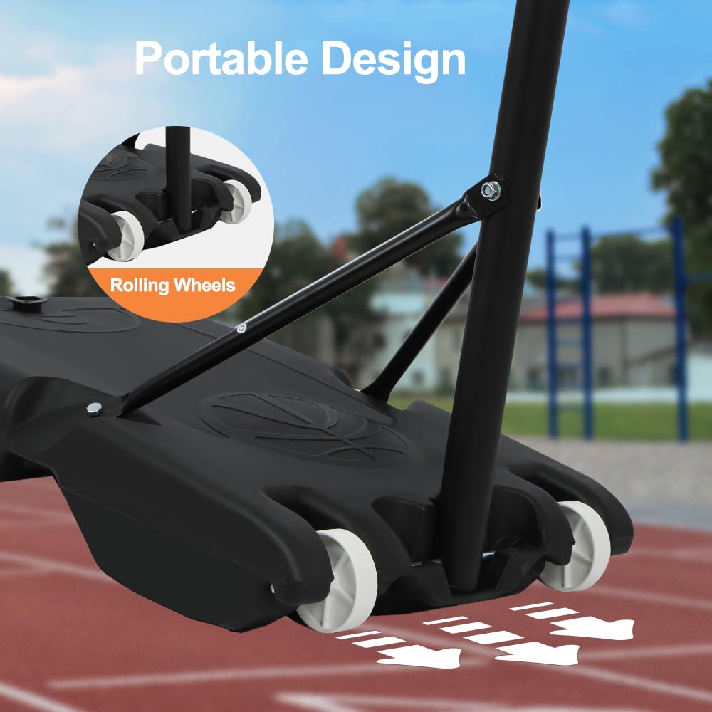 - Portable Basketball Hoop Base-- Smooth rolling wheels make basketball hoop set easy to move from indoor to outdoor, from garden to park, do not need to wait the competition, just sweating anytime, anywhere