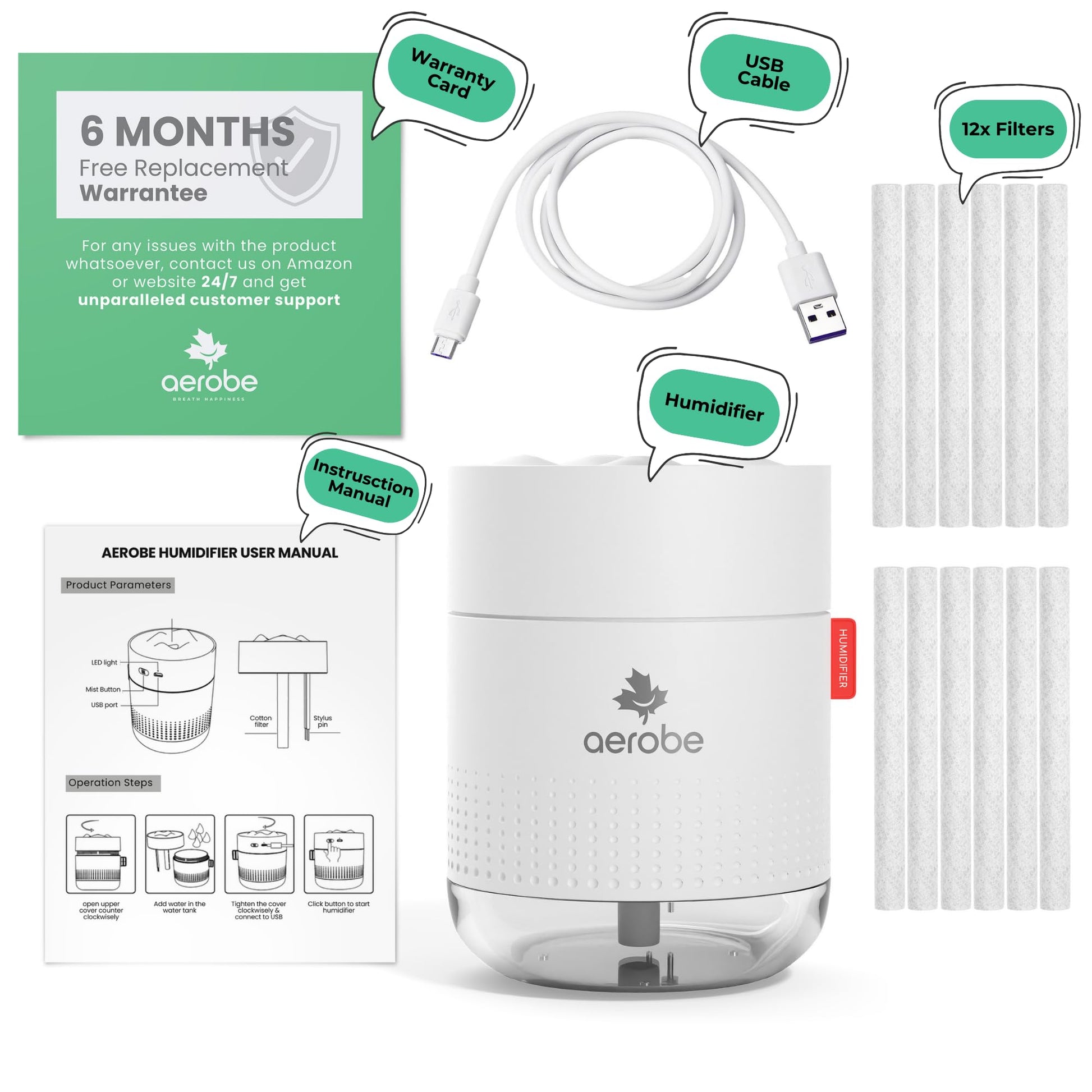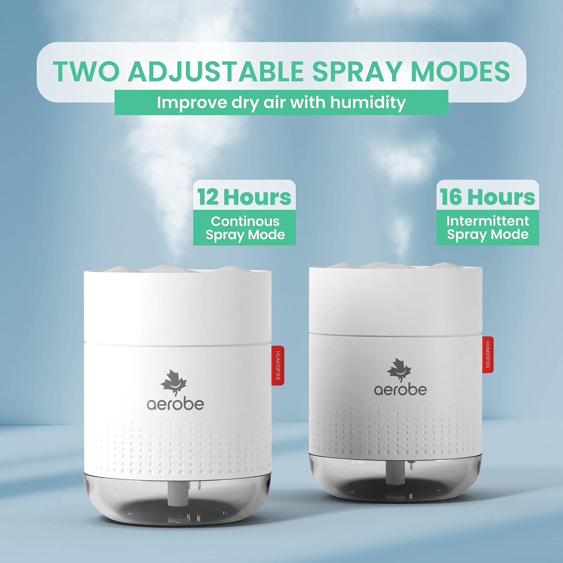 - ā³ PERSONALIZED COMFORT WITH EXTENDED OPERATION! Enjoy the Tailored Comfort with our portable humidifier featuring 2 mist modes continuous (12hrs) & intermittent (16 hrs). Aerobe Humidfiers for home comes with 12 Pcs filters for convenient & long time use.