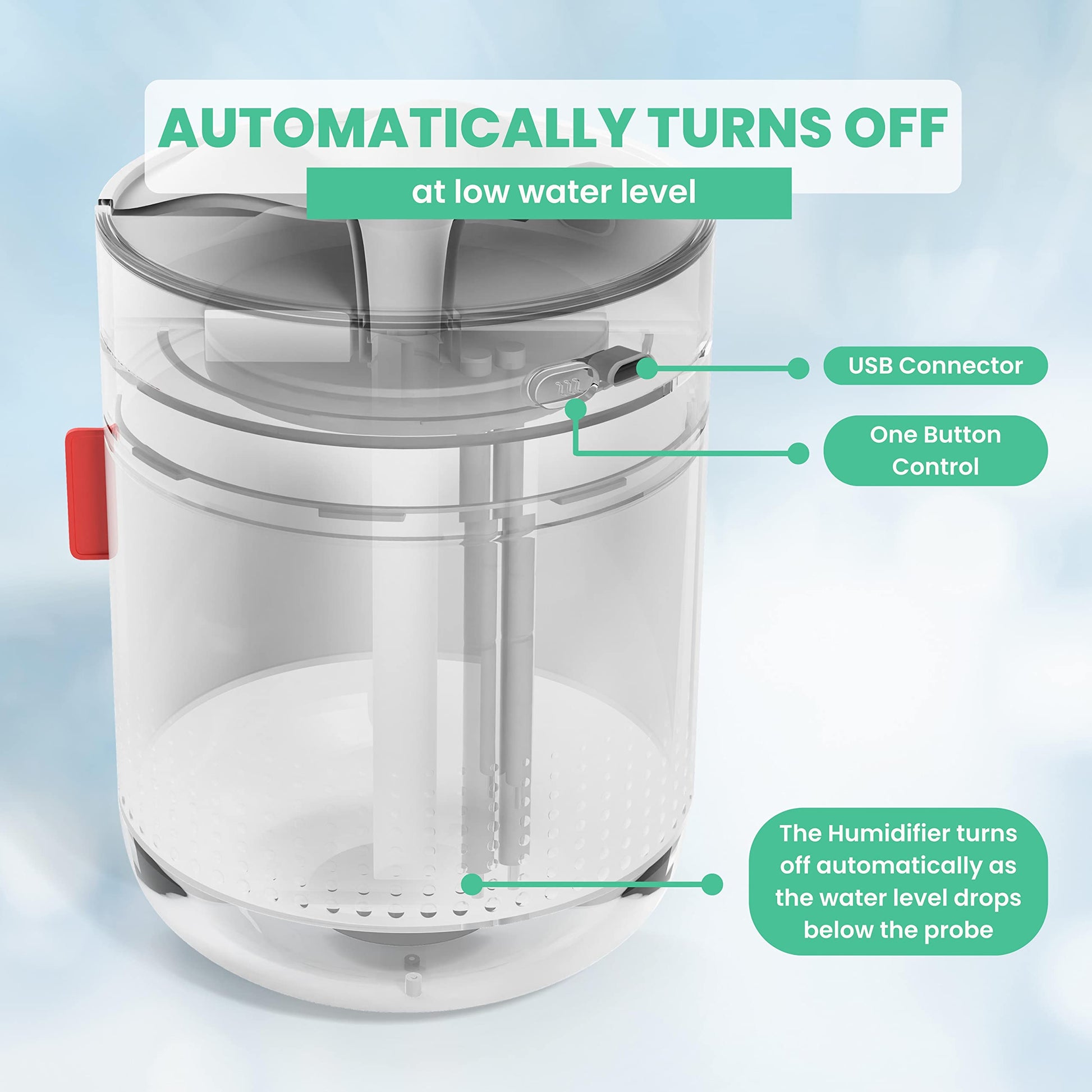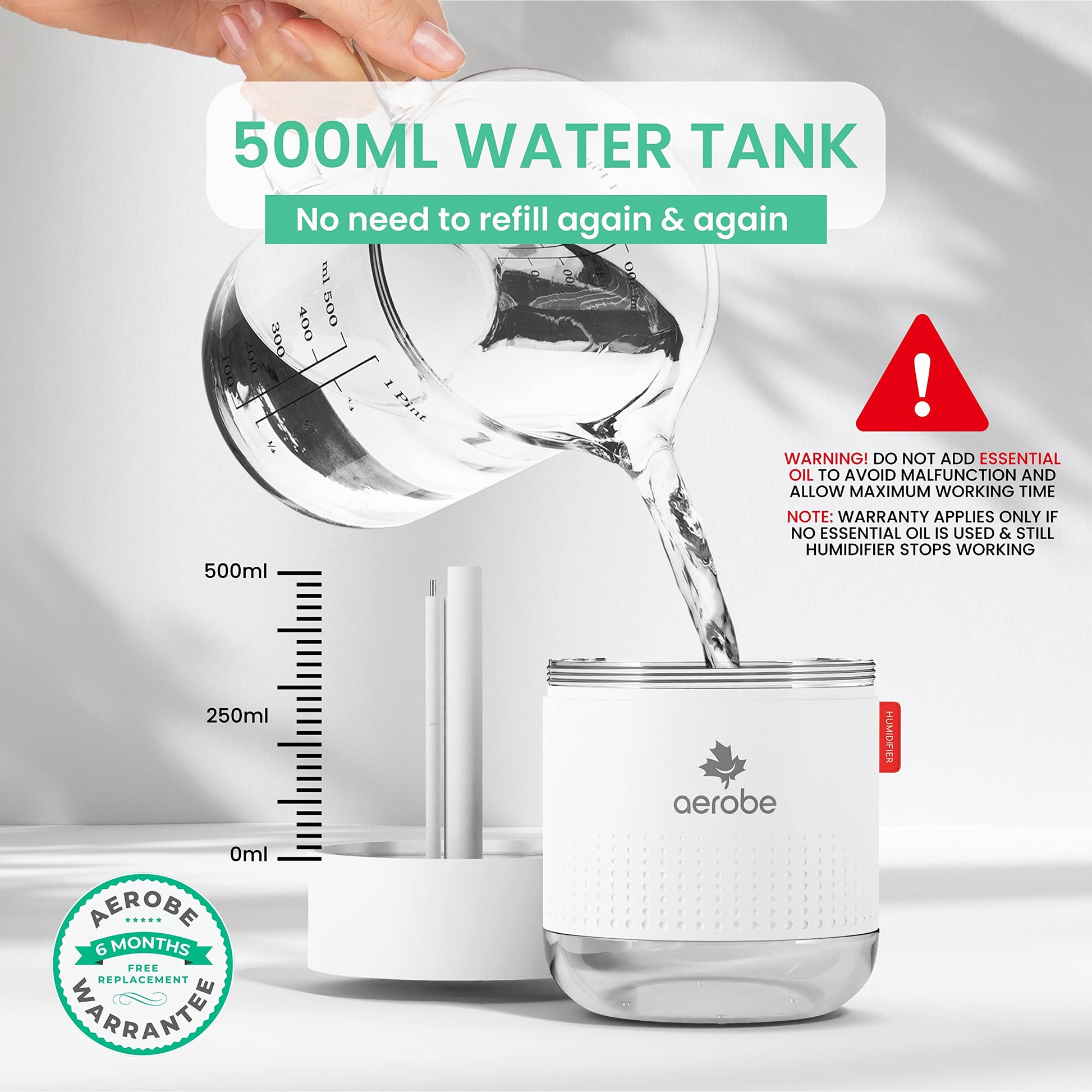 - š” ENSURE SAFETY AND ENERGY EFFICIENCY! Aerobe humidifier for bedroom has a water capacity upto 500ml which lasts for upto 16 hrs and comes with a waterless auto shut-off feature for efficient energy usage helping you save on huge electricity bills.