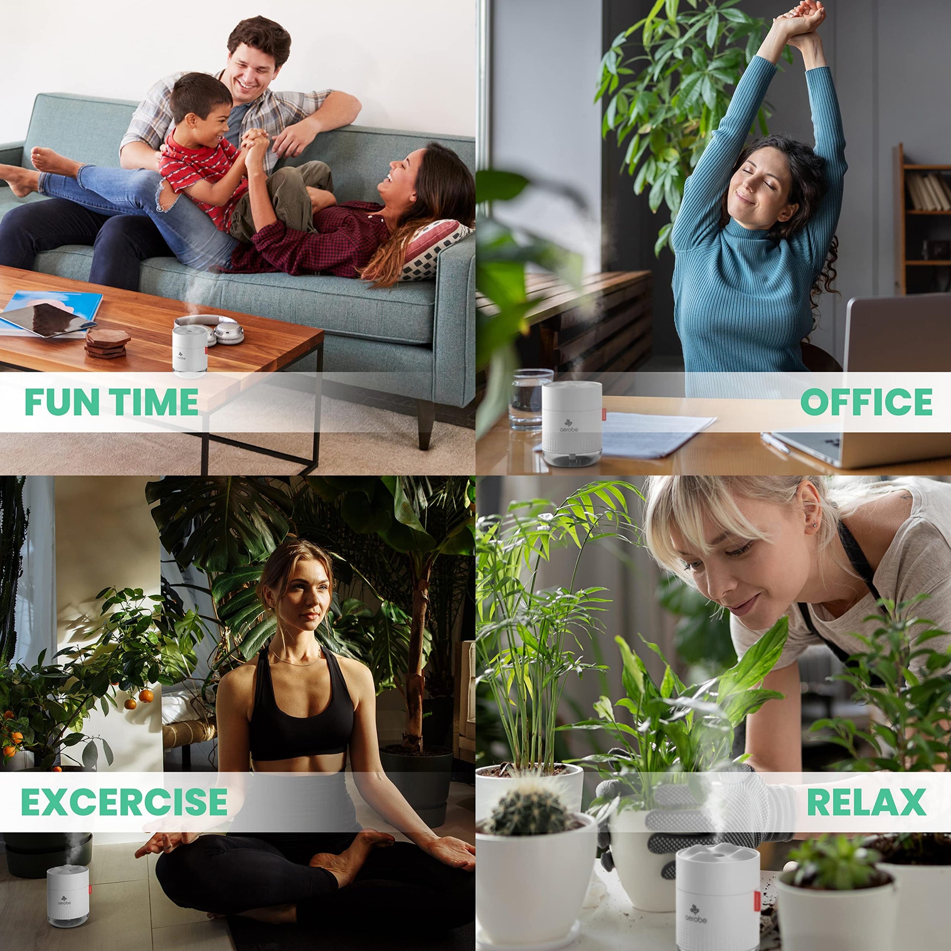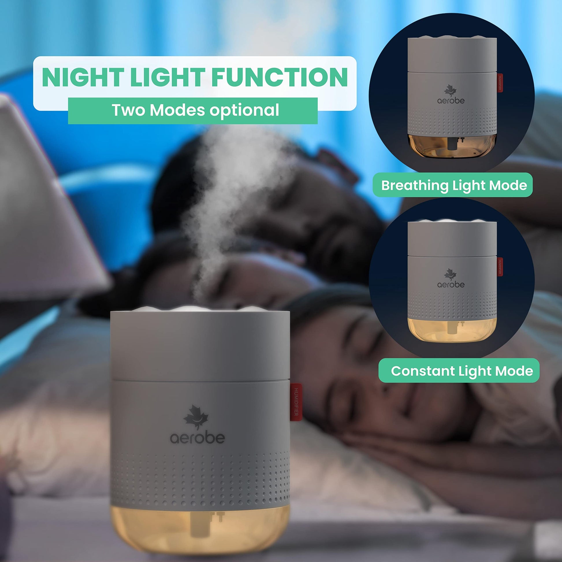 - š¤ ENHANCE YOUR SLEEP WITH AEROBE AIR HUMIDIFIER! Enjoy peaceful nights & improved breathing in optimally humid environment with our mini humidifier for bedroom as it operates super quietly (< 30 DB) & feature two warm lighting modes making sleep more blissful.