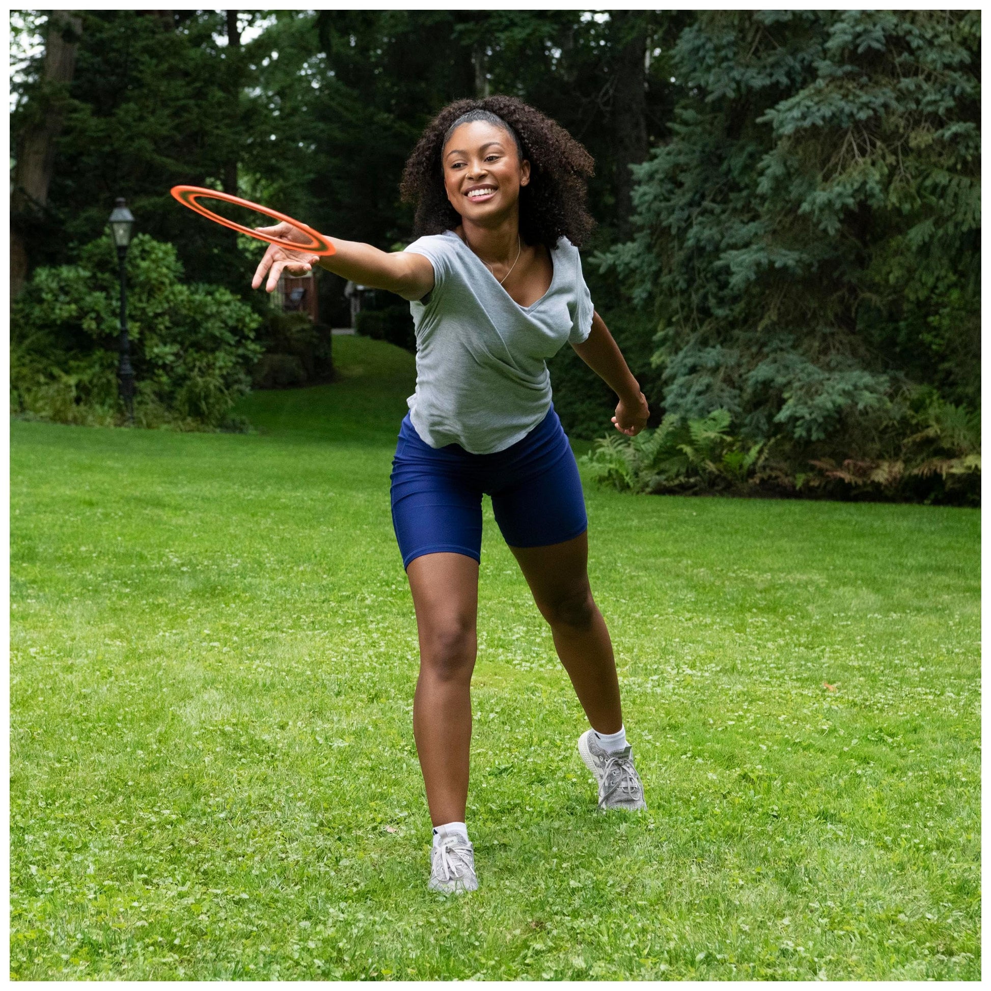 The Spring Ring is the smaller version of the Aerobie Pro Flying Ring. With this throwing ring, precise frisbee throws are also possible, thanks to the smaller diameter, this ring can also be played well in smaller areas.