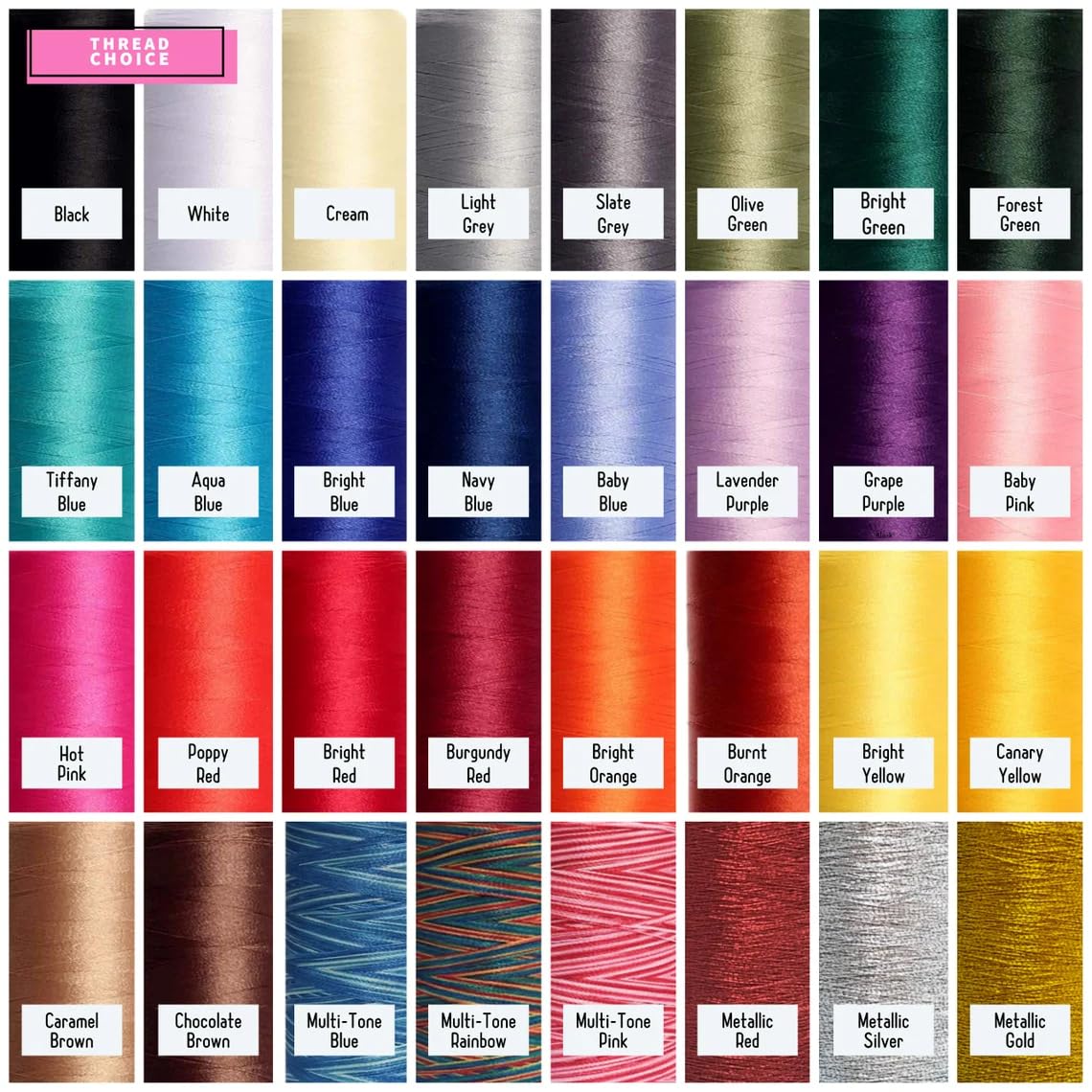 - Customisation: Embroidered text or initials in over 30 thread colours