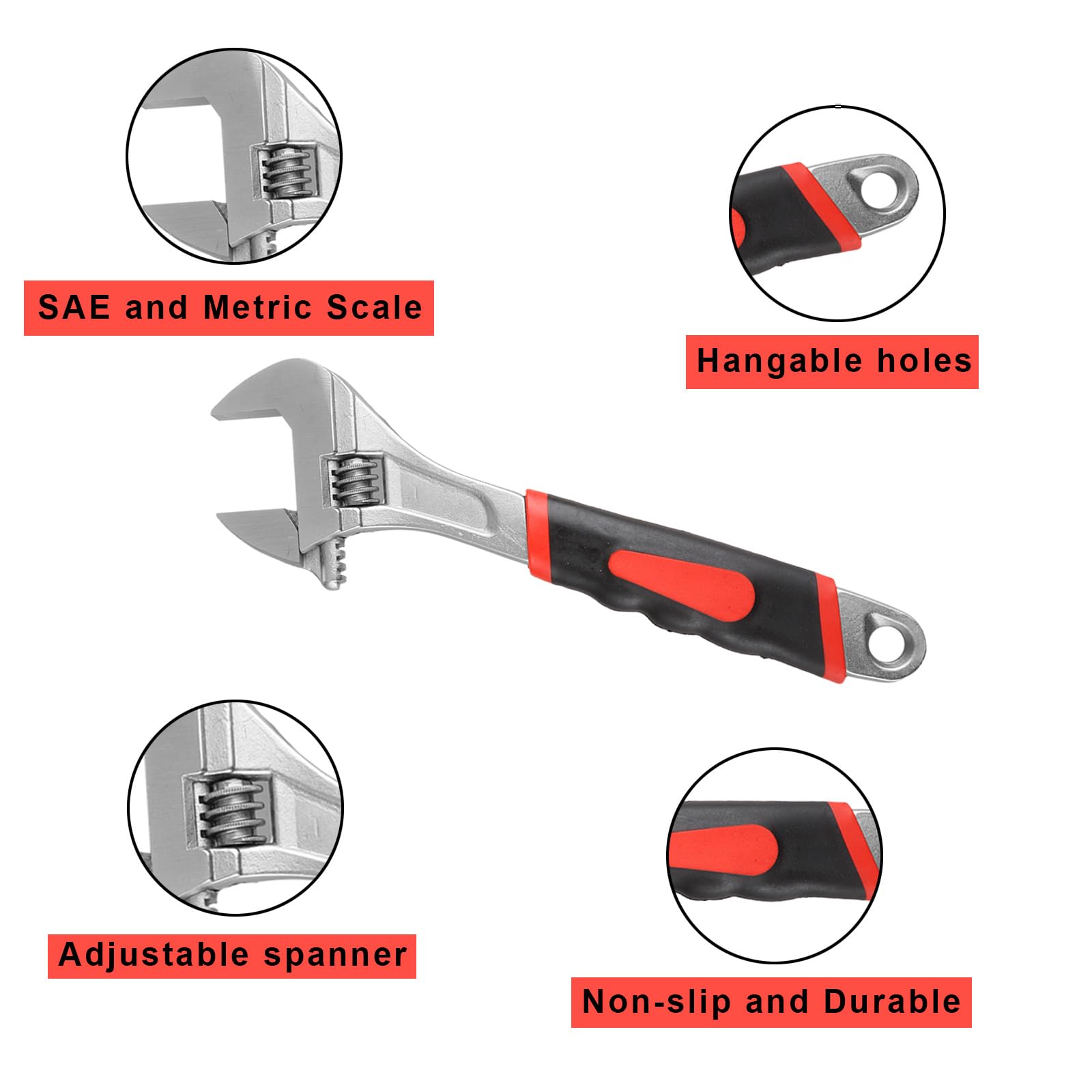 - - [Easy to Use] The steel spanner set features laser-etched metric and SAE scales, allowing for easy and quick jaw adjustment and smooth rotation. The small hole at the end of the handle can be used for convenient storage.