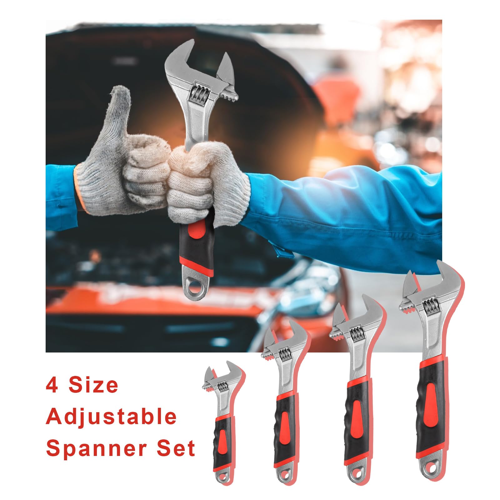Details: AHAQU 4PCS Adjustable Spanner Set - 4 Sizes, Multifunctional Carbon Steel Wrench Set for Home, Bathroom, Garage Maintenance and Repair