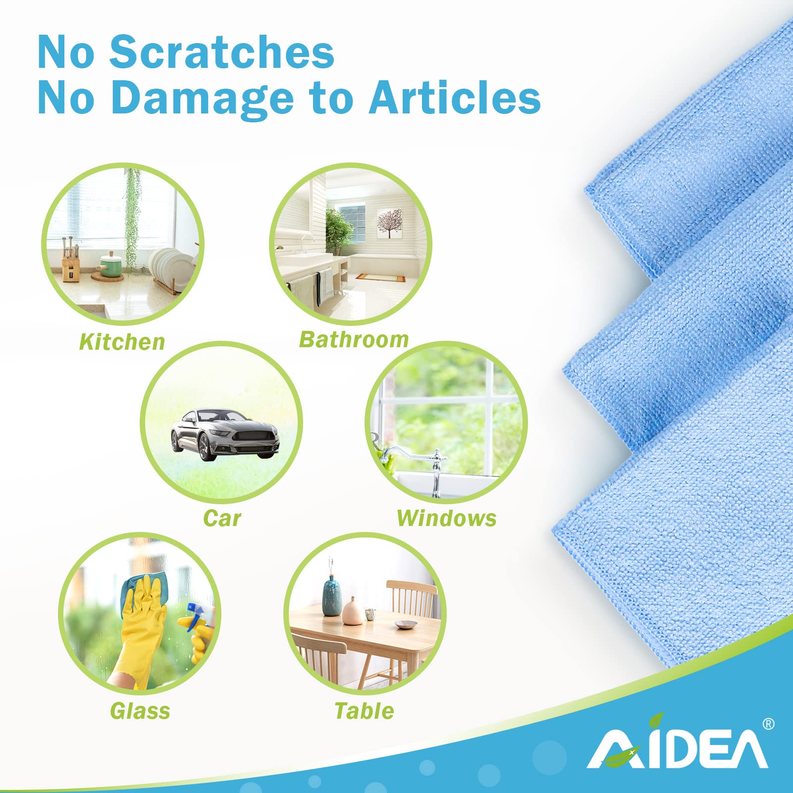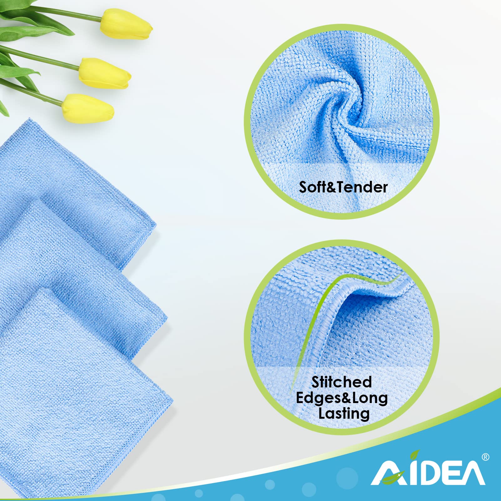 - 【REUSABLE,DURABLE,LONG LASTING】AIDEA kitchen cleaning cloths are durable ,which can be machine washed up to 300 times because of reinforced edges. Microfibre polishing cloths can’t be teared easily. Reduce waste and save your money.