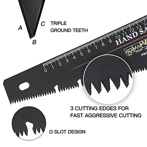 - FAST CUTTING: Three cutting surfaces, cutting speed is 50% faster than traditional hand saws. The coating on the blade reduces friction and allows the handsaw to make quick cuts during push and pull.