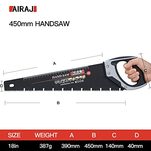 AIRAJ 450MM Hand Saw, 8TPI Fine Cutting Heavy Duty Pruning Saw, Unique Ω Type Chip Flutes, Comfortable Non-Slip Handle, Professional Pruning Saw for Garden Trimming