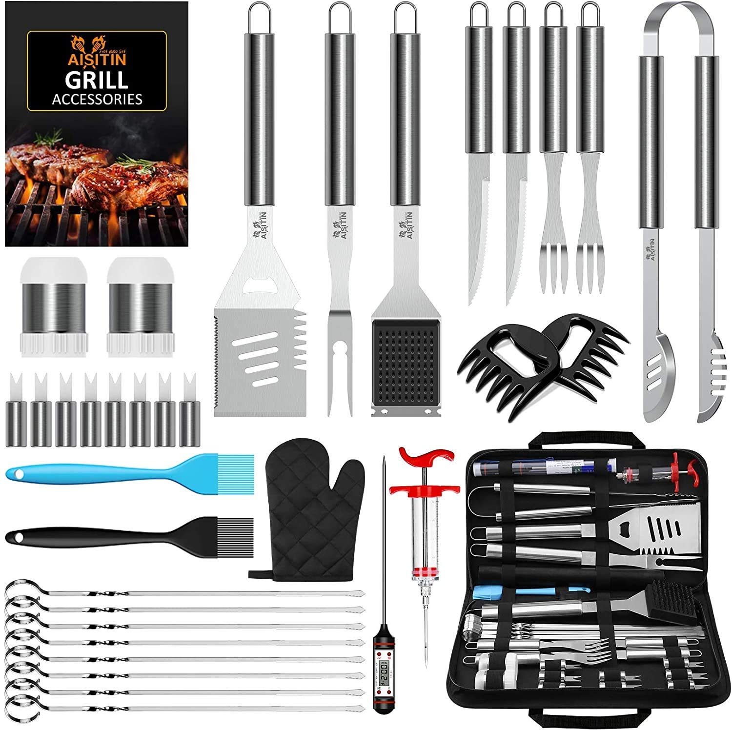 AISITIN BBQ Tools Set 35-in-1 BBQ Accessories BBQ Utensils Stainless Steel Barbecue Accessories for Camping Kitchen BBQ Utensils with Carrying Bag Gifts for Men and Women Gift