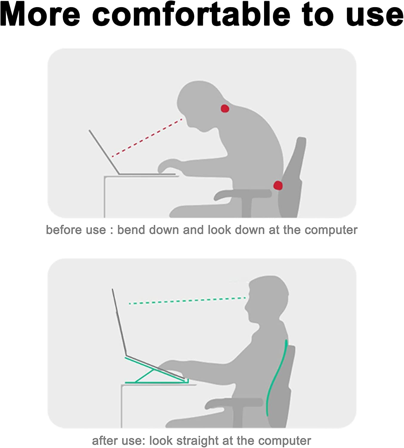 - 【Compatible with Laptops of Different Sizes】The laptop riser for desk is suitable for all laptops from 8 to 16 inches, easy to store and takes up little space; easy to carry, you can put it in your backpack or bag.