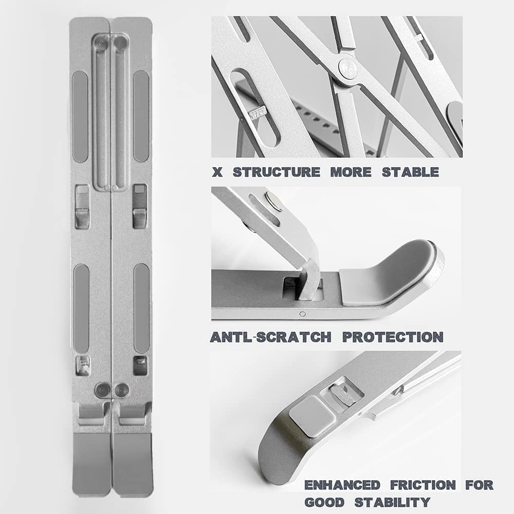 Aitodos® Laptop Stand Desk, Aluminum Alloy, Anti-Slip, Folding Laptop Stand, Portable Laptop Stand - Ventilation and Cooling, 6-Position Adjustment - Used for office, Sitting Posture Correction