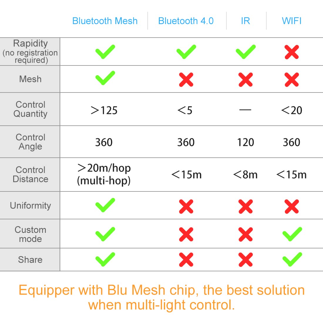 - New Tech: Equipped with Bluetooth 5.0 chip to deliver the all new “MESH” connectivity. Practical APP user interface allows you free control to any number of lamps as desired. An excellent solution to multi-lights operation, which overcomes the shortcomings of remote control lights and WIFI lights.