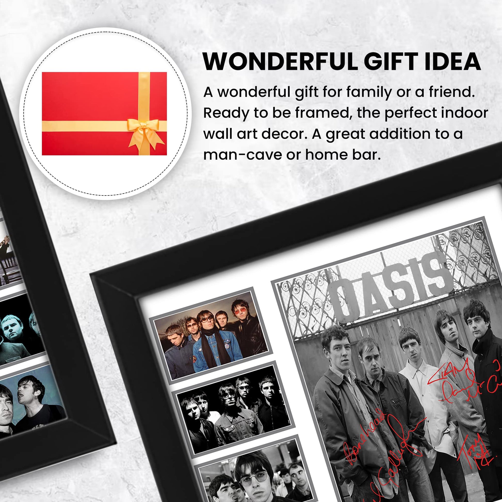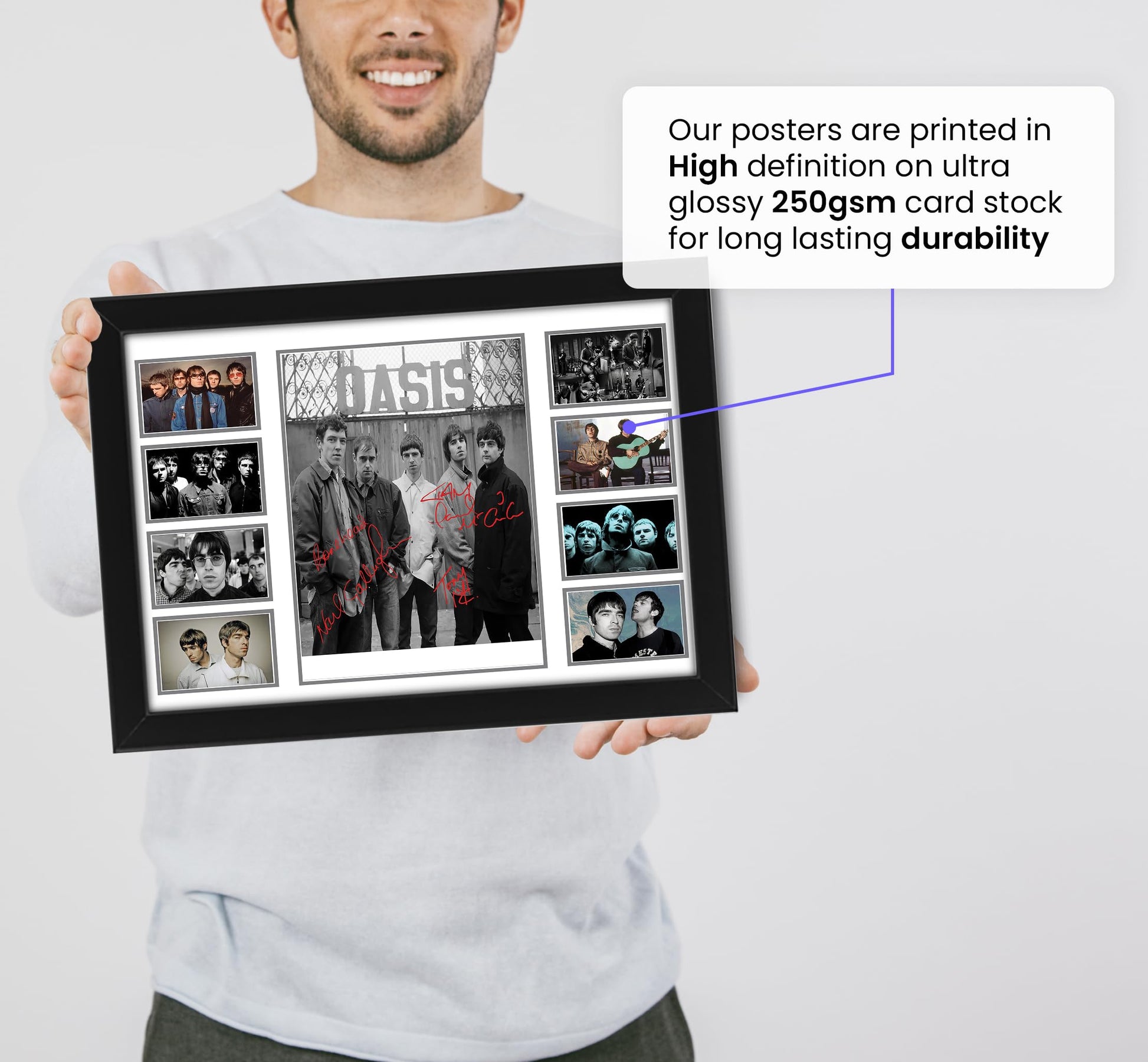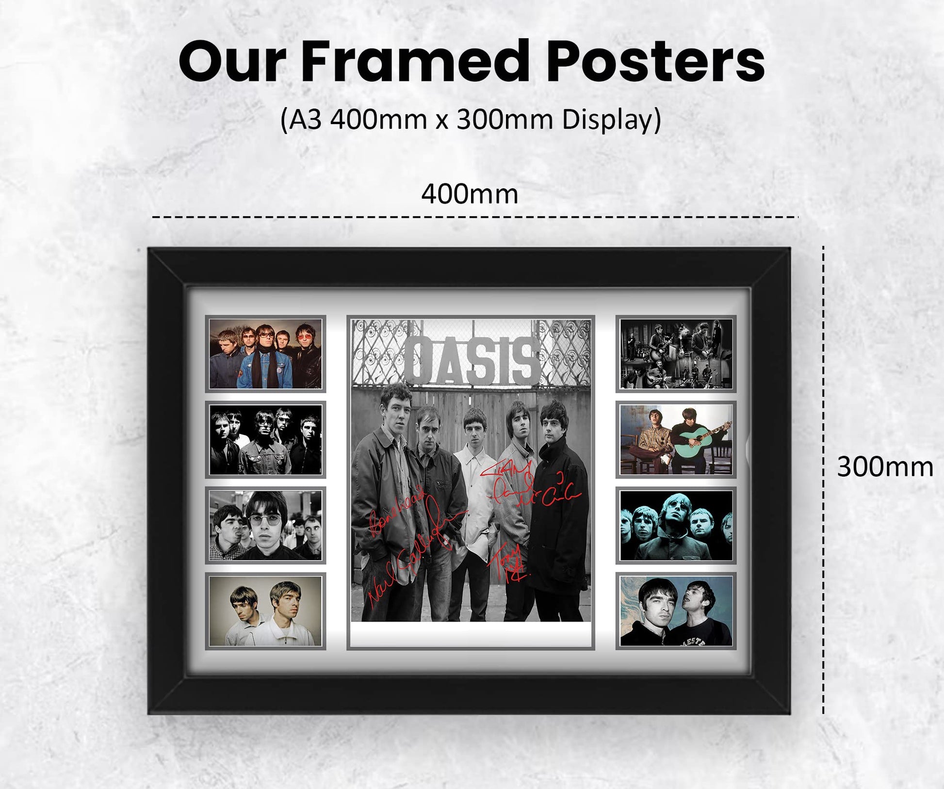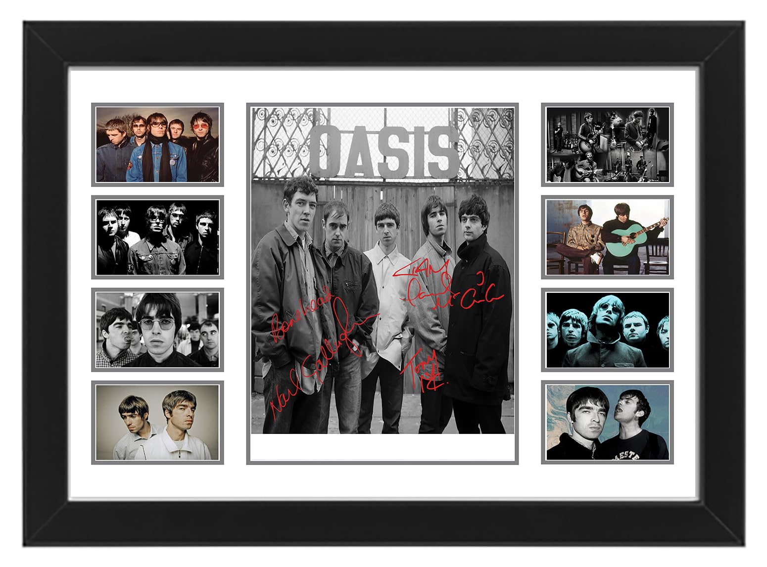 AllStarMedia Oasis Autographed Collage Poster Print - Limited Edition Gift for Band Lovers - Wall Decor for Music Fans, Merchandise, (Framed, A4 (12x8-30x20cm))