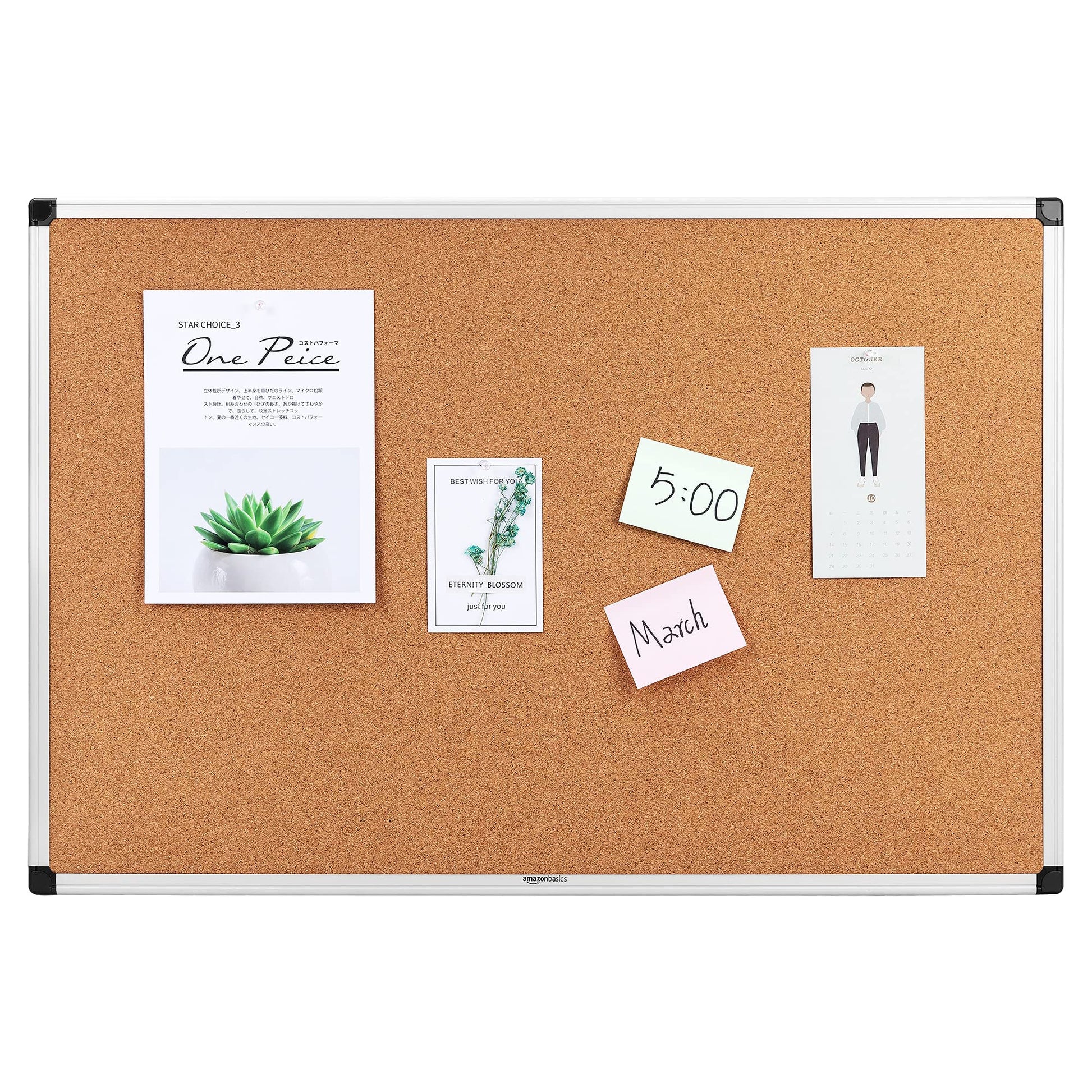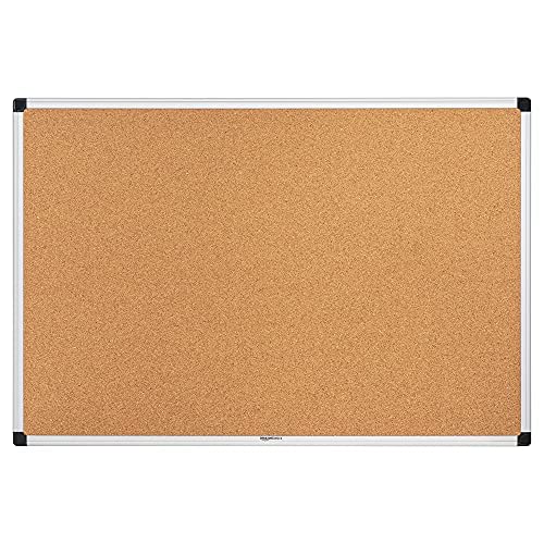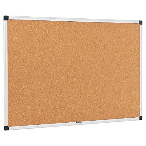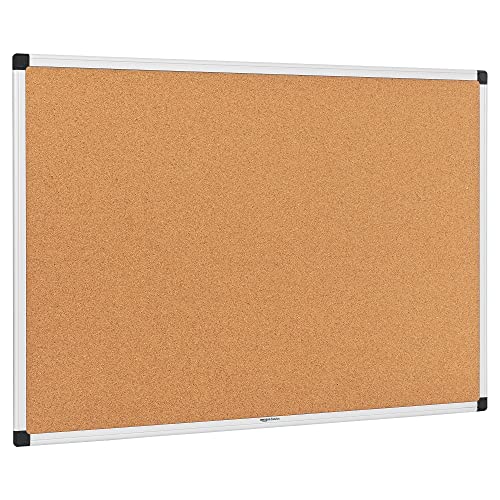 Amazon Basics Aluminum Frame Cork Notice Rectangular Board, 90cm x 60cm, Silver