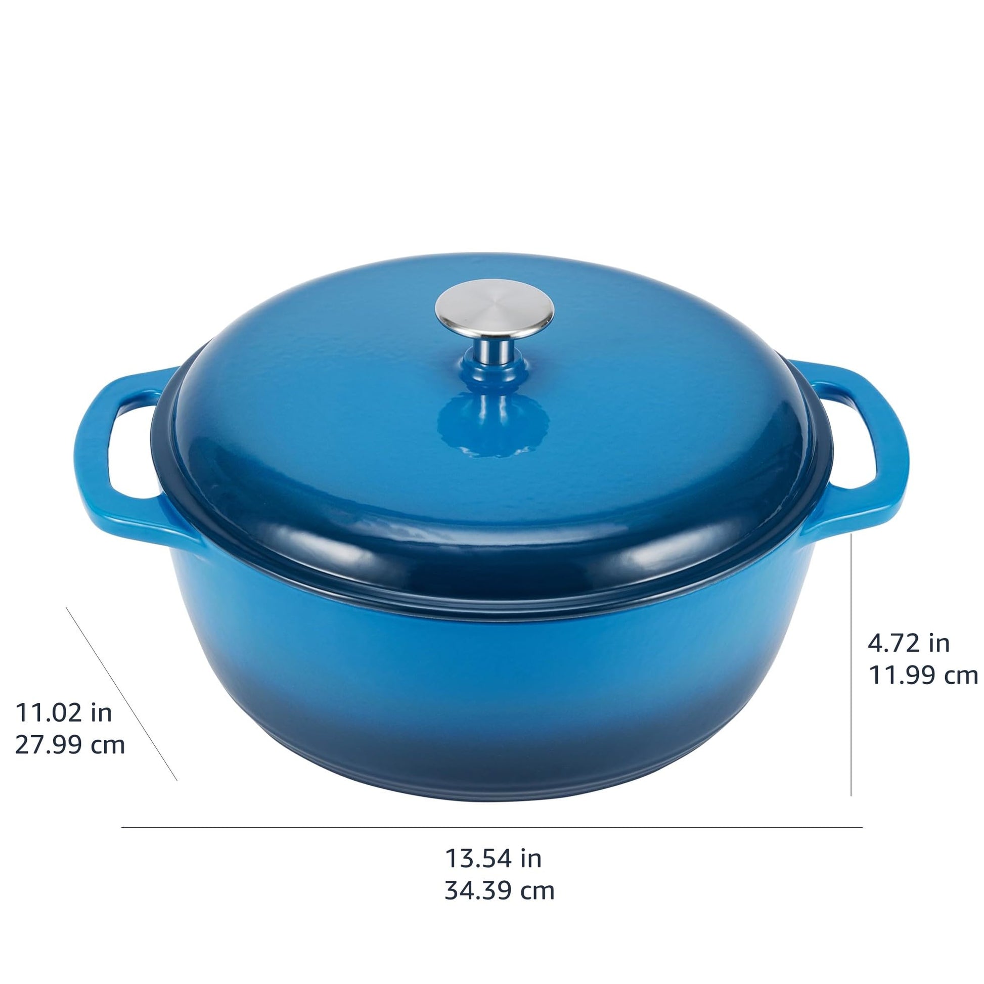 Amazon Basics Enameled Cast Iron Round Dutch Oven with Lid and Dual Handles, Heavy-Duty, 5.6 L, Blue