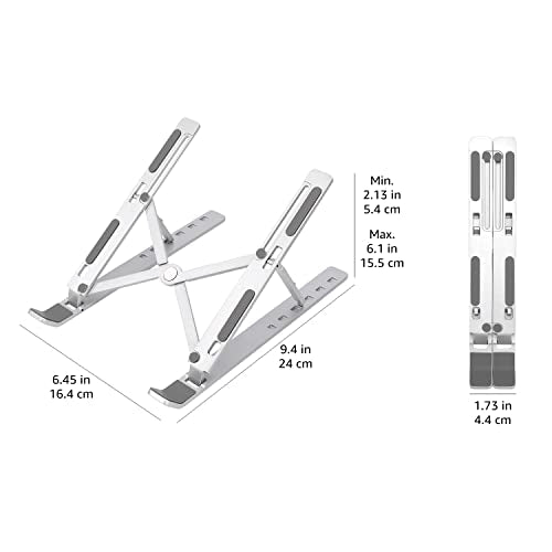 Amazon Basics Laptop Stand with 6-Angle Adjustment, For Laptops 10 (25.4 cm) - 15.6 Inches (39.6 cm), Silver