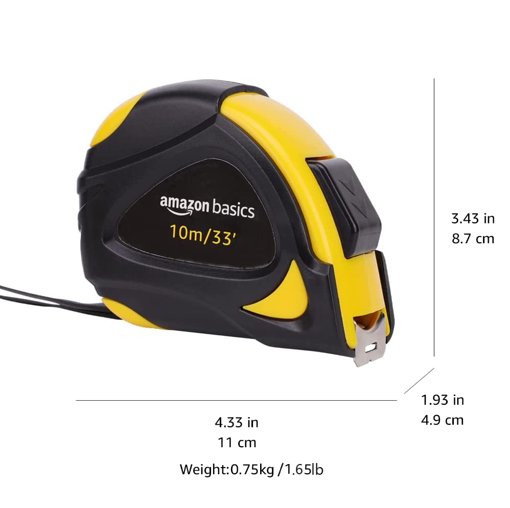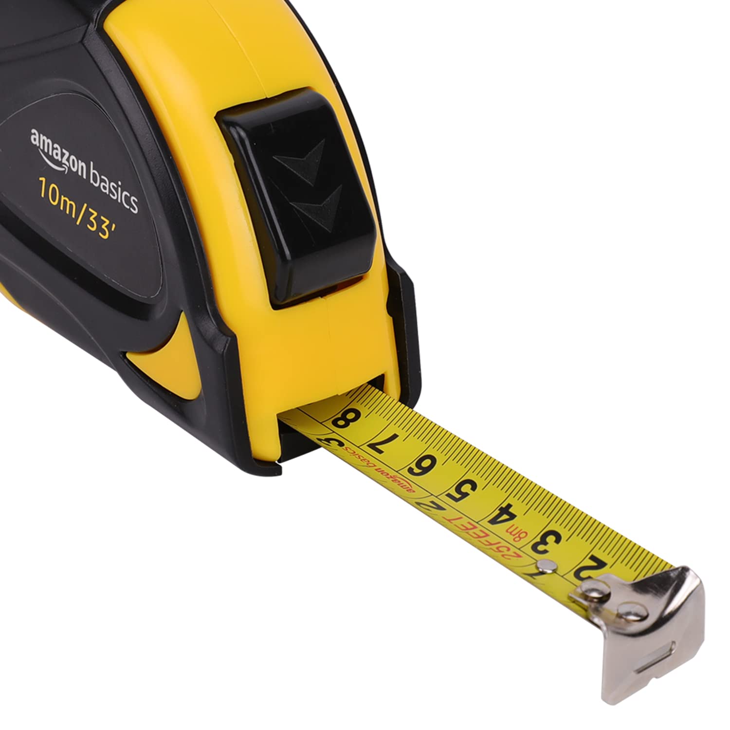 - Amazon Basics Self-Locking Tape Measure - 33-Feet (10-Meters), Inch/Metric Scale, MID Accuracy