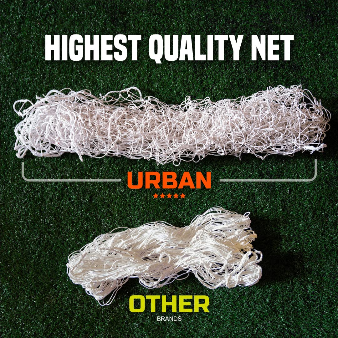 - ALL WEATHER FRAMES AND NET – All 4 goals and nets are of the highest quality and UV treated. Goals and high quality 2mm net can be left outside in any weather, year round, unlike other goals.