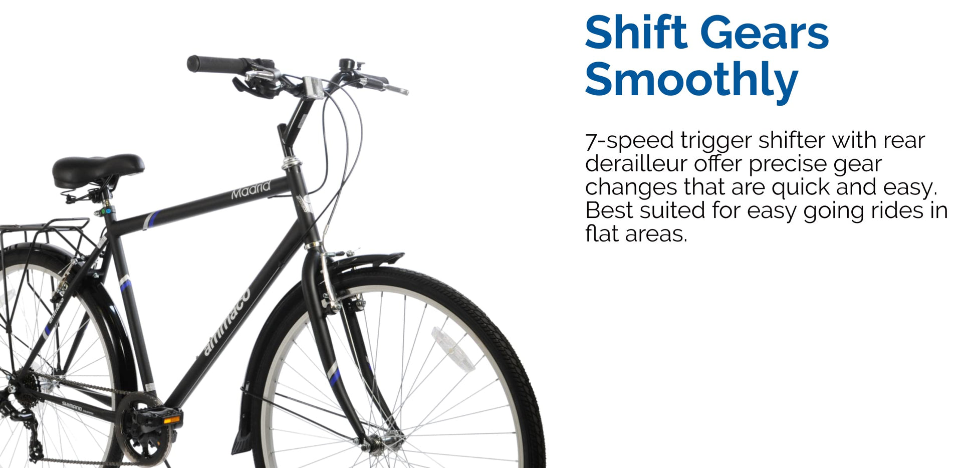 - Style For Everyday Riding: Ammaco city-style hi-tensile frame and fork are sturdy yet responsive. Great for around town and light trails, the Madrid's sleek looks ensure you're always riding in style.