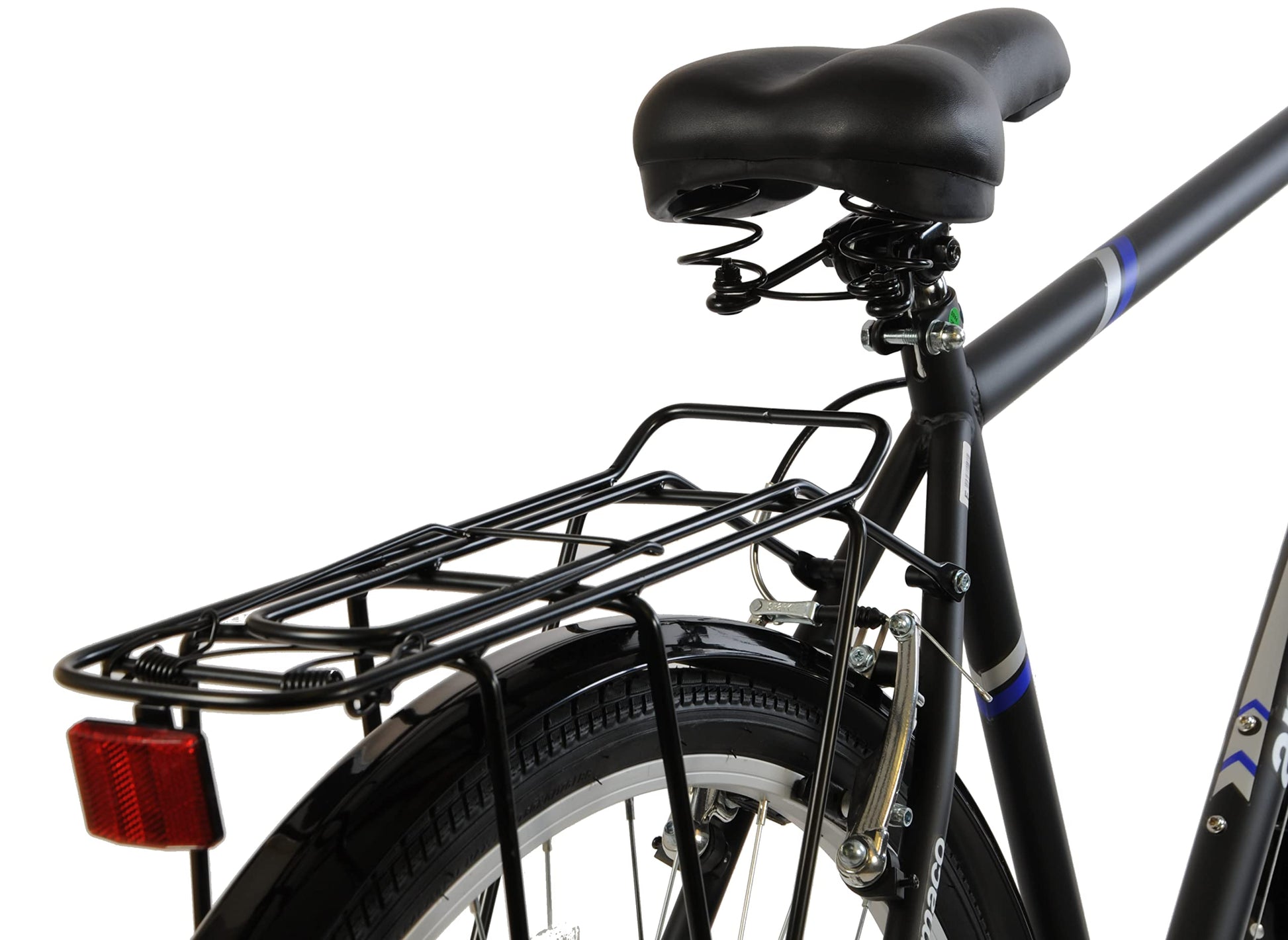 The stylish and handy Ammaco Madrid Mens Hybrid Bike provides everything you need, whether its roaming around the countryside or making your daily commute, the Madrid has it all; its 7 speed Microshift gears ensure any hills you may face will be a breeze. The included pannier rack makes your commute that bit easier, just attach your pannier bag and away you go.