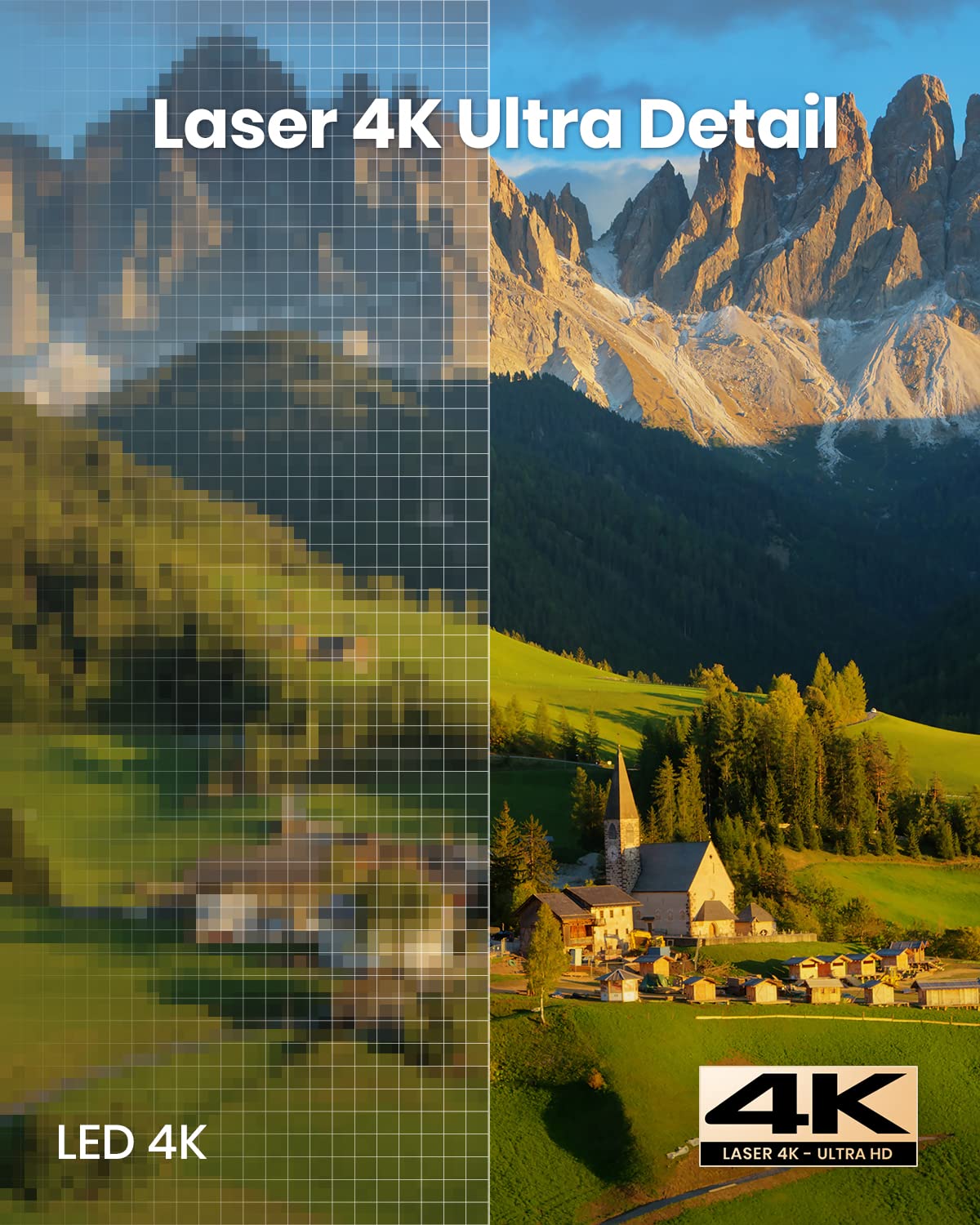 - Laser-Powered Detail: Make your movies shine with the intensity, which is so bright you can even watch with the lights on, then watch every pixel pop in 4K UHD quality.