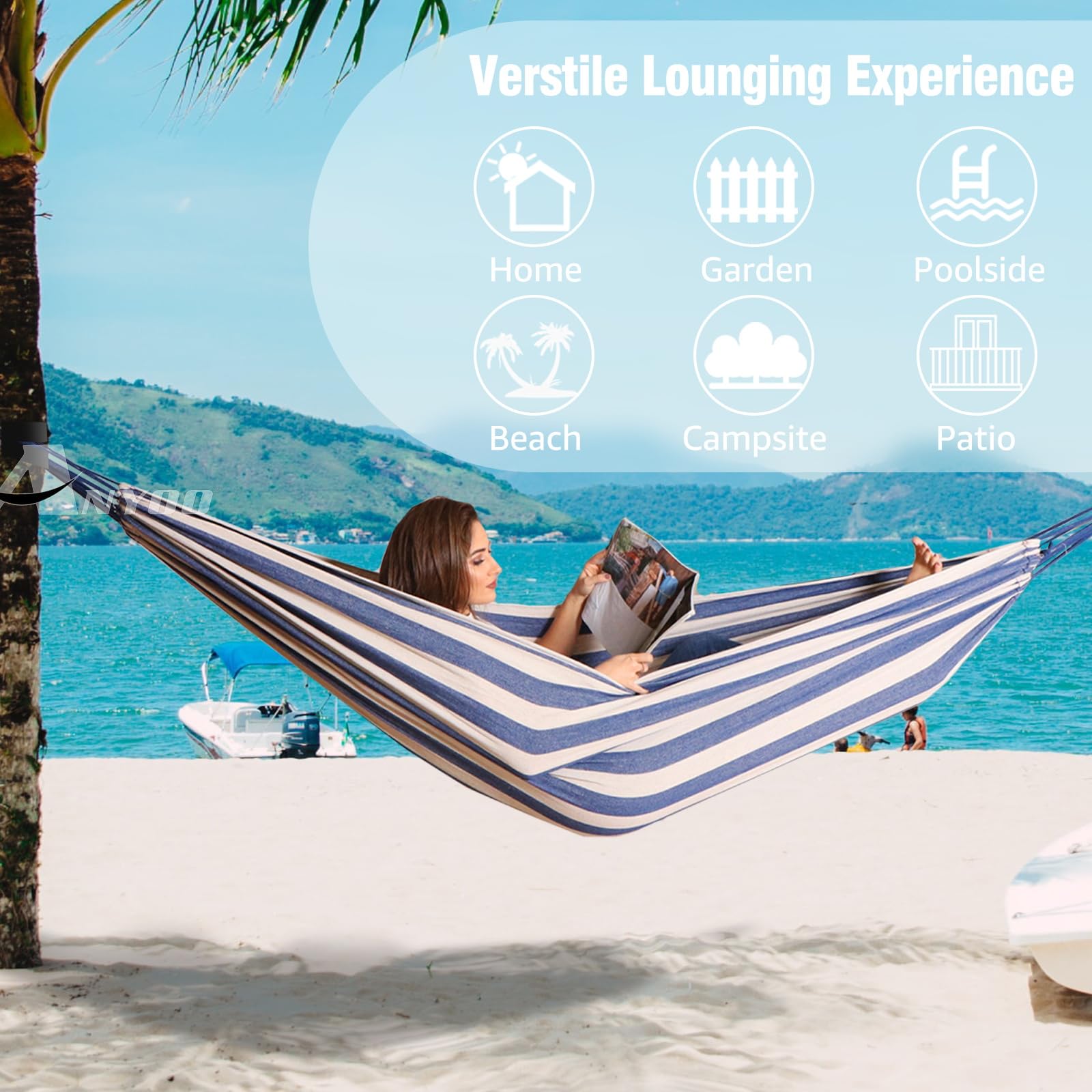 Anyoo Cotton Hammock Comfortable Fabric with Tree-friendly Straps, Durable Portable Hammock with Travel Bag,Perfect for Garden Camping Outdoor/Indoor Patio Balcony Backyard