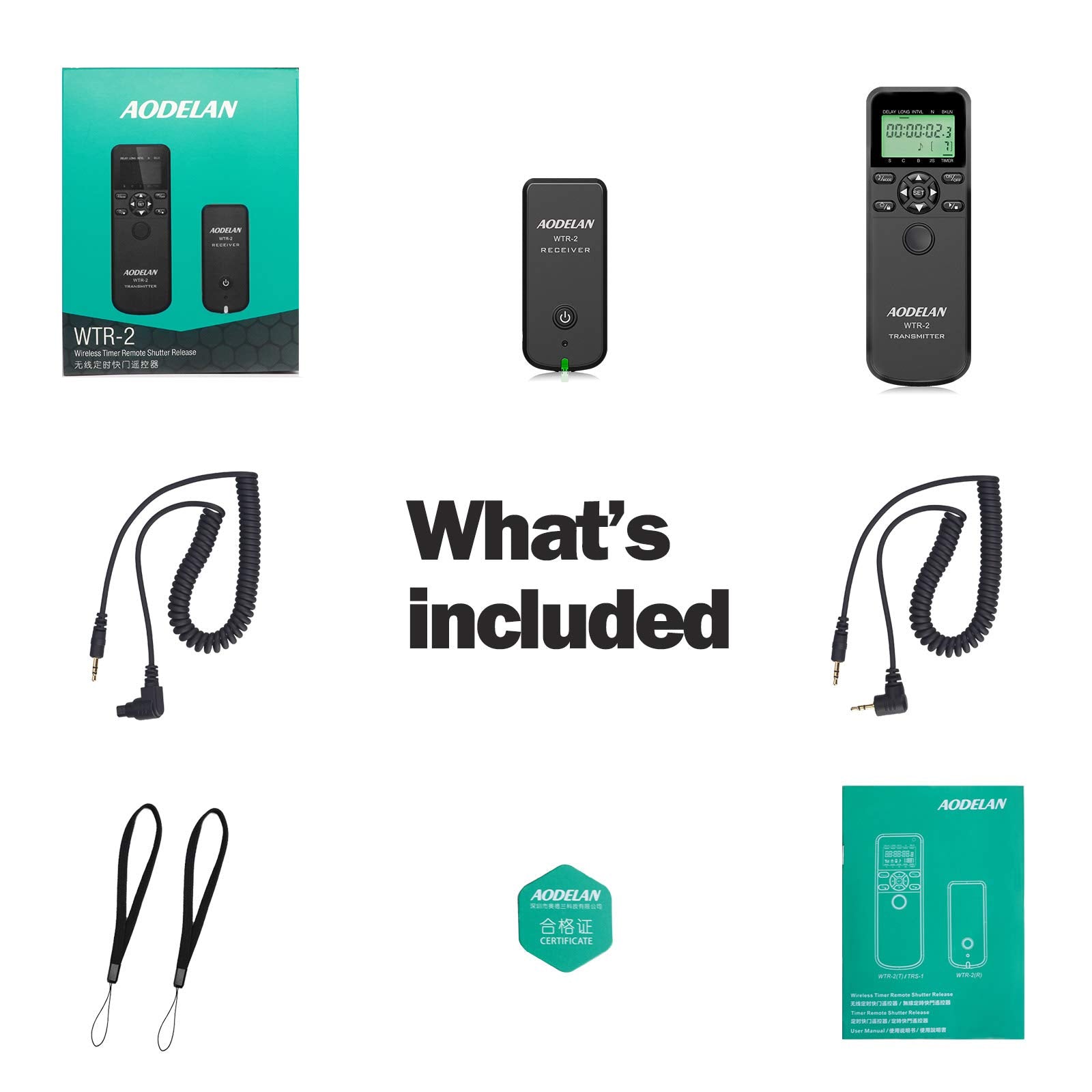 Details: AODELAN WTR-2 works as a wireless timer and remote shutter release system with the Receiver connecting to the camera and the Timer controlling the receiver. Also, the Timer WTR-2(T) can work as a wired system with it connecting to the camera directly. Besides the full functions of shutter release, it also features multiply timer functions: delay timer, long exposure timer, interval timer and as well as setting for the number of exposure; its timing setting can be accurate to 0.1 seconds. The WTR-2 is great for time-lapse recording of blooming flowers, astrophotography, etc.