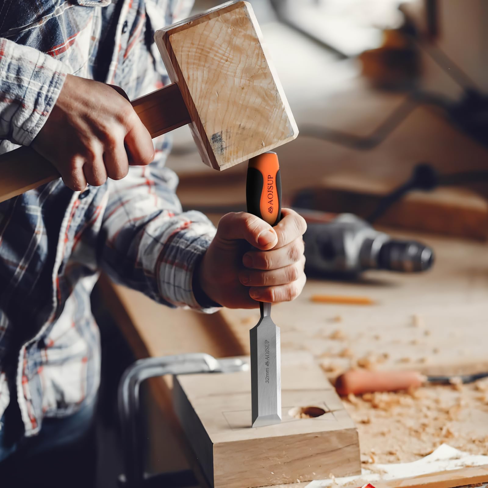 - ✅【Professional Chisel Set】- AojSup wood chisel set includes 6 premium wood chisel (6, 12, 19, 25, 32, 38 mm) and a sharpening stone (120/240 grit), used for wood carving, cutting, woodworking, etc. Perfect for DIYers and professionals.